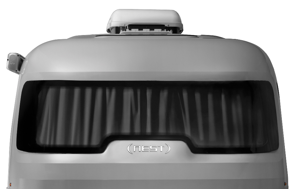 Com apenas 5,05 metros de comprimento, 2,16 metros de largura e um peso que não ultrapassar a tonelada e meia, graças ao uso de fibra de vidro (no lugar de alumínio), a Nest acaba por ter espaço para tudo o que necessita, com uma entrada traseira em vez de lateral, permitindo arrumar o sofá transformável em cama na traseira, acomodar a cozinha e os armários de cada lado, e montar um pátio externo.