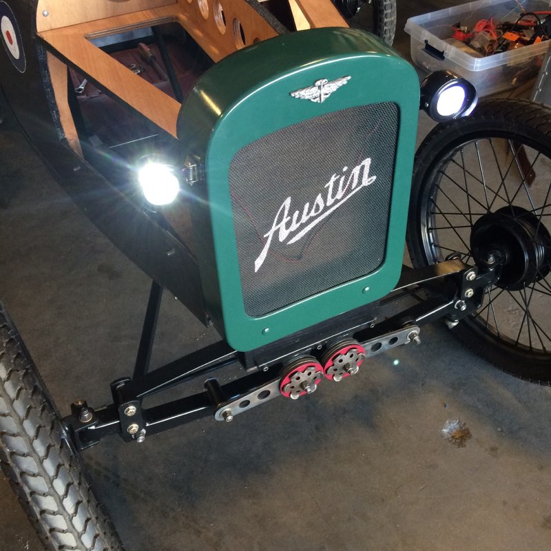 O Austin 7 de Douglas Varey é extremamente leve, pesando apenas 125 kg, para um comprimento de 236 cm. O motor elétrico é bastante compacto e está instalado atrás (o Austin tinha motor à frente, onde Varey colocou as duas baterias), com ligação por corrente ao eixo traseiro. O chassis é feito de uma estrutura de contraplacado, coberto com uma carroçaria de Xorel, um tecido sintético.