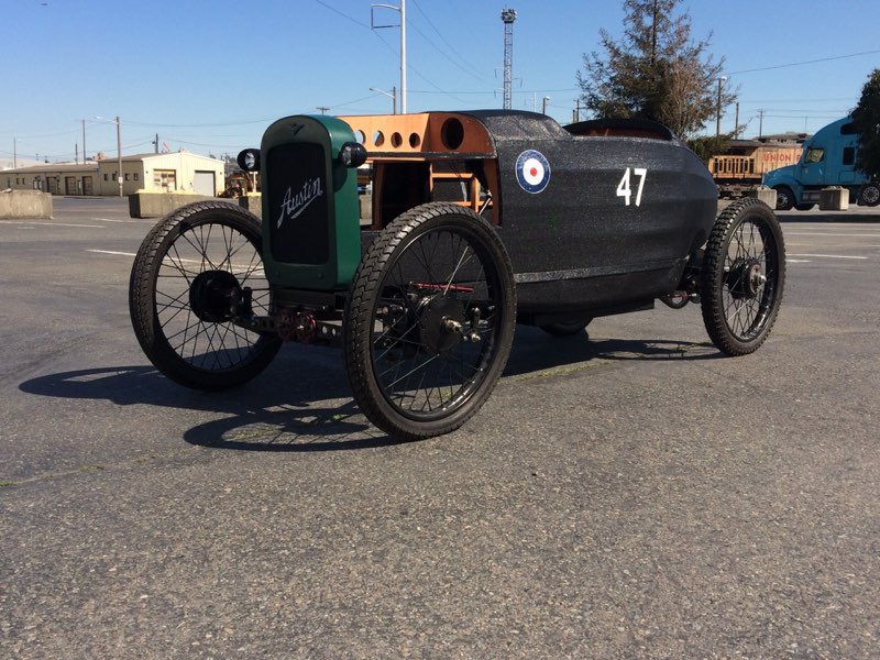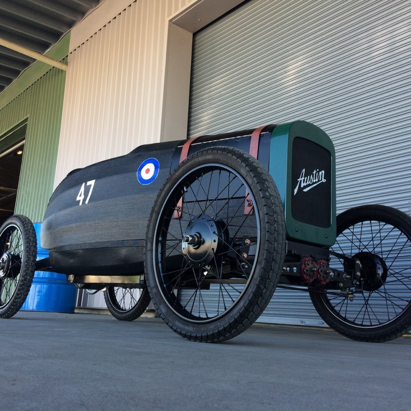 Estes “automóveis”, todos com ar de terem sido construídos antes da Segunda Guerra Mundial, são na verdade karts, na sua maioria com motor de moto. Mas Varey preferiu ter consciência ecológica e preferiu instalar um Motenergy de 5 kW (7 cv) de potência na traseira do seu carro, uma réplica do Austin 7 Sports, na forma de voiturette, como foi usado no Grande Prémio de Bolonha de 1923, uma prova popular para cyclecars, carros de competição com motor de 1100 cc.