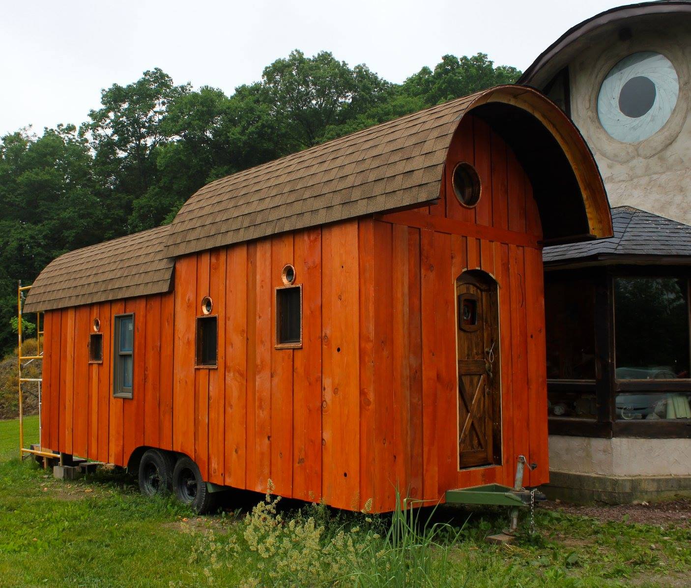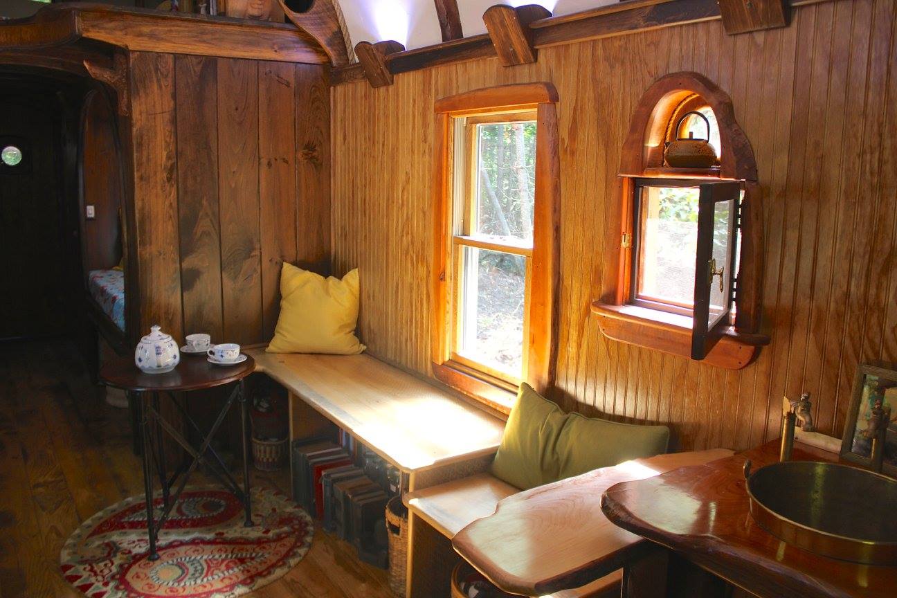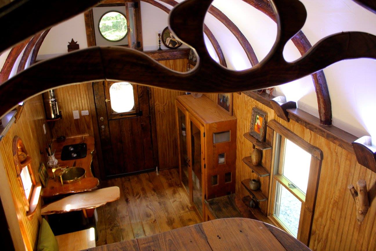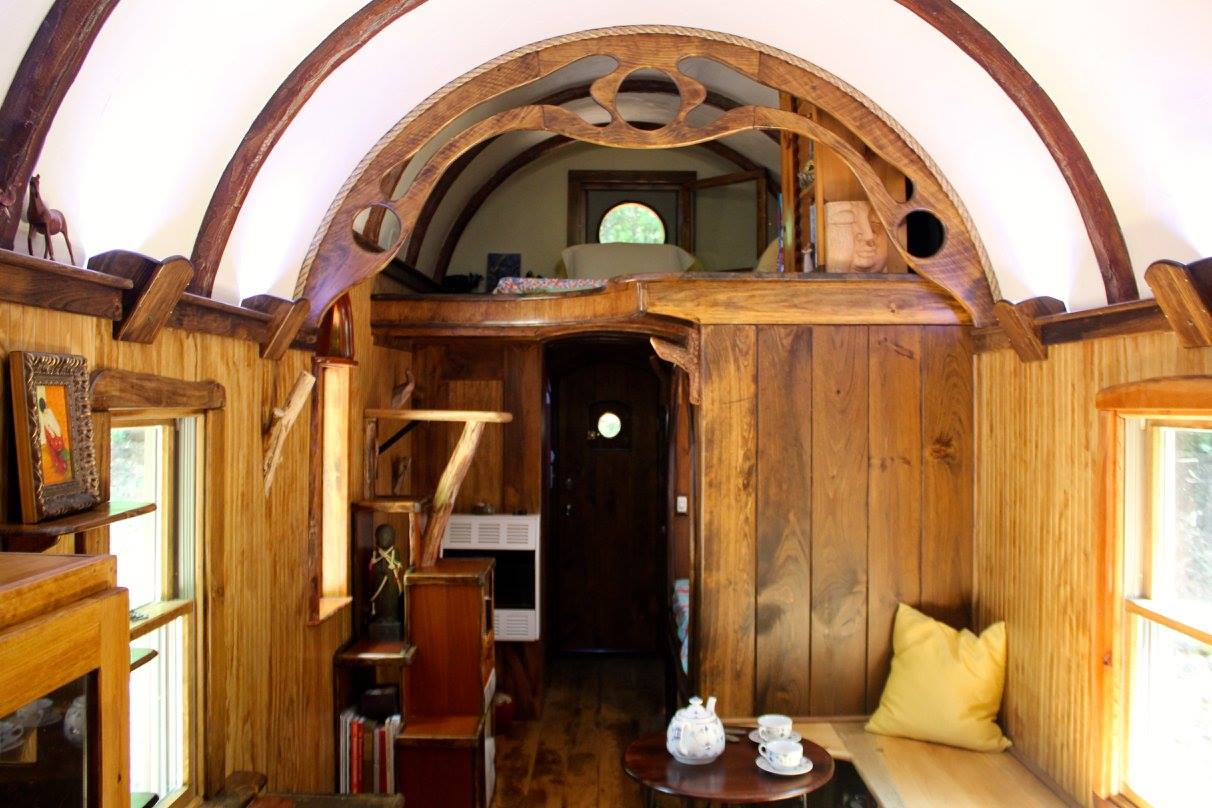 Esta caravana de madeira foi desenhada para funcionar completamente desligada da rede. Para isso, usa uma bateria elétrica de corrente direta e um gerador alimentado por gás propano. A forma redonda da caravana clássica melhora melhora o aproveitamento de espaço anterior em comparação com uma moderna, e o segundo piso está bem integrado no design, servindo como quarto de dormir.