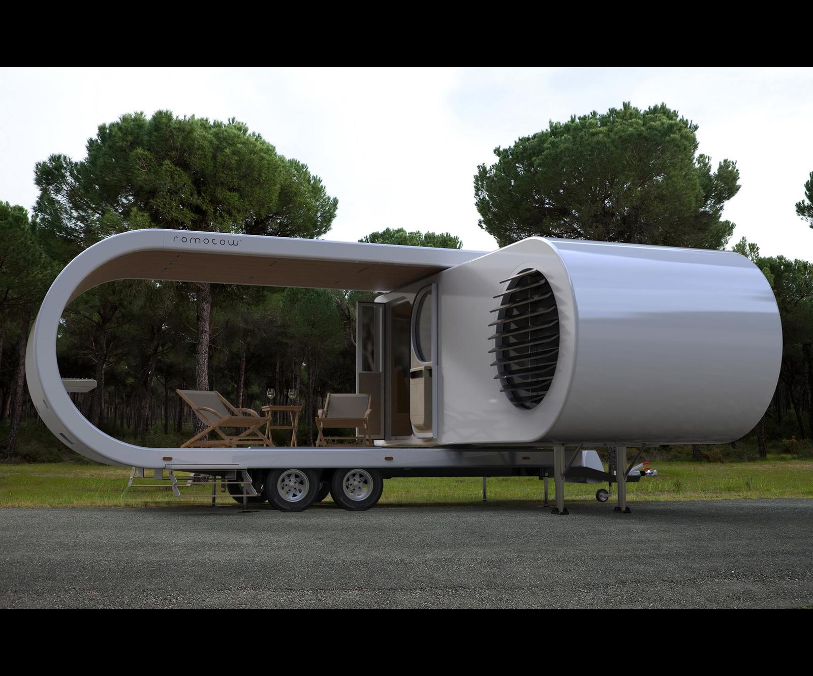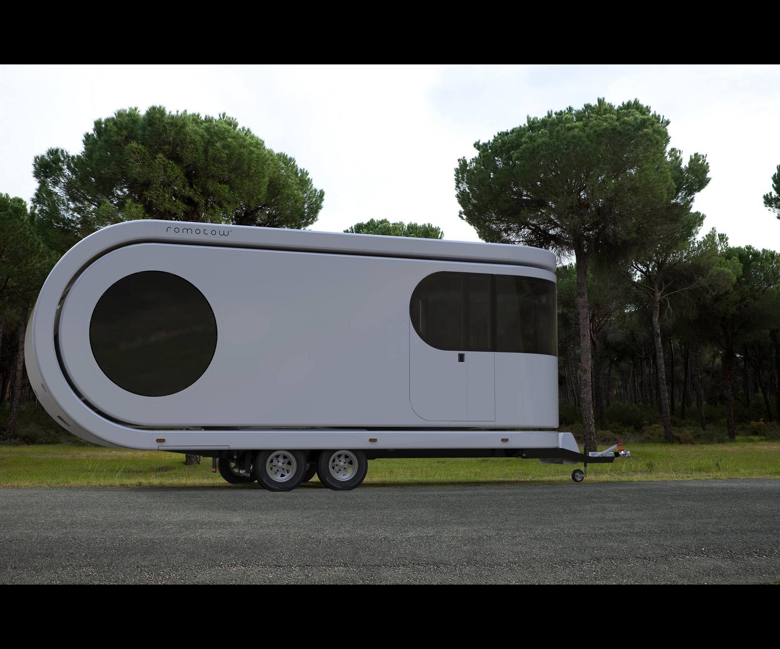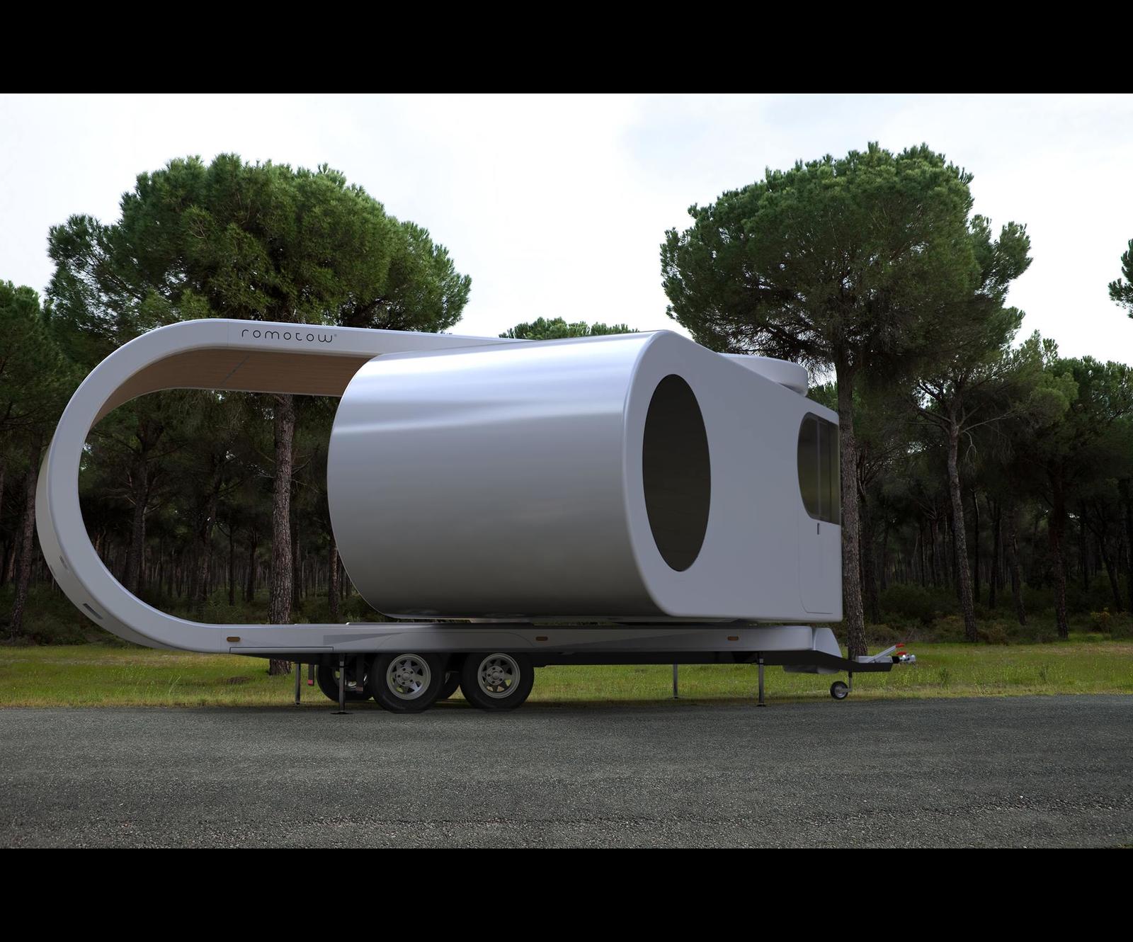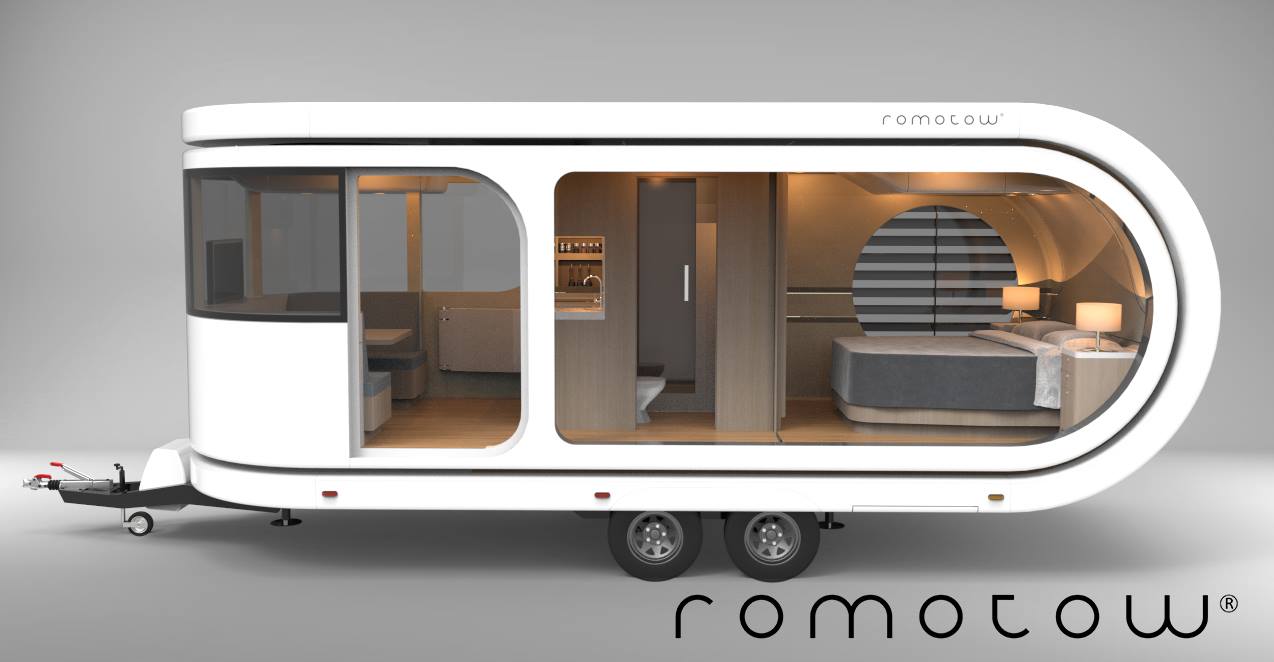 Criada por dois engenheiros da Nova Zelândia, a Romotow tem uma secção externa fixa, que serve como estrutura central montada sobre o eixo. A cabina é a parte rotativa, com uma estrutura leve que tem espaço para a cama, a casa de banho e a sala de jantar com cozinha. Estes são elementos que pode encontrar em qualquer caravana, mas são também aqueles onde vai acabar por passar menos tempo.