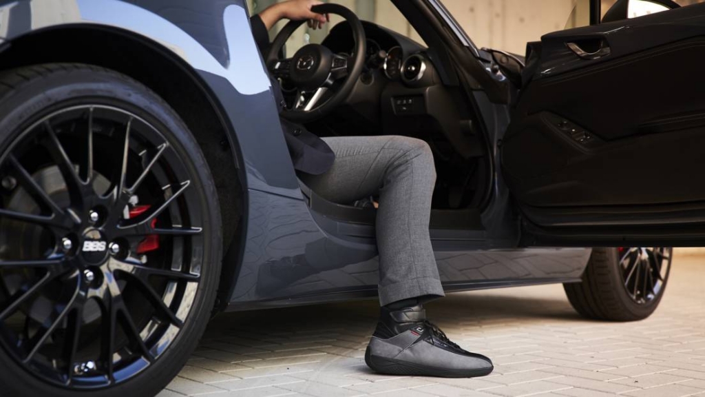 O calçado de condução concebido pela Mazda e pela Mizuno não é apenas atraente do ponto de vista estético, proporcionando também excelentes características de condução.