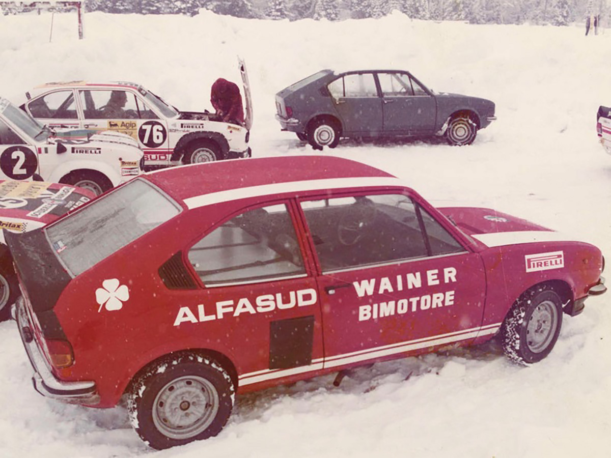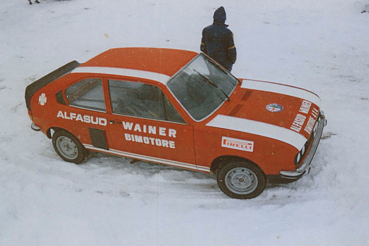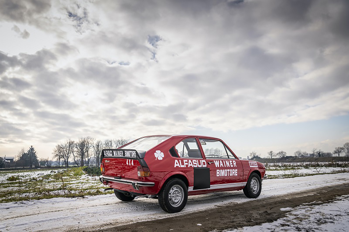 Mas, o que nos traz aqui hoje é o Alfa Romeo Alfasud TI Bimotore 4×4 que, tal como o nome indica, está equipado com dois motores, um na frente e outro na traseira, desenvolvido por Gianfranco Mantovani, conhecido por Wainer, que tinha uma empresa de preparação de automóveis de competição, sempre ligada à Alfa Romeo, pois trabalhou de perto com a Autodelta e com o seu fundador, Carlo Chiti.