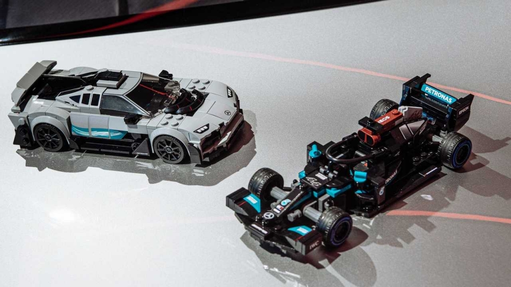 Nesta última, a LEGO replicou o monolugar de F1 conduzido por Lewis Hamilton na temporada passada, numa peça com cerca de 4 cm de altura, 19 cm de comprimento e 7 cm de largura, e que inclui pormenores com a asa dianteira ou o tradicional halo de proteção e os pneus Pirelli, além de todos os autocolantes para uma decoração fiel, é vendido com mais 2 minifiguras de piloto, cada um com um capacete de corrida, peruca e uma chave inglesa.