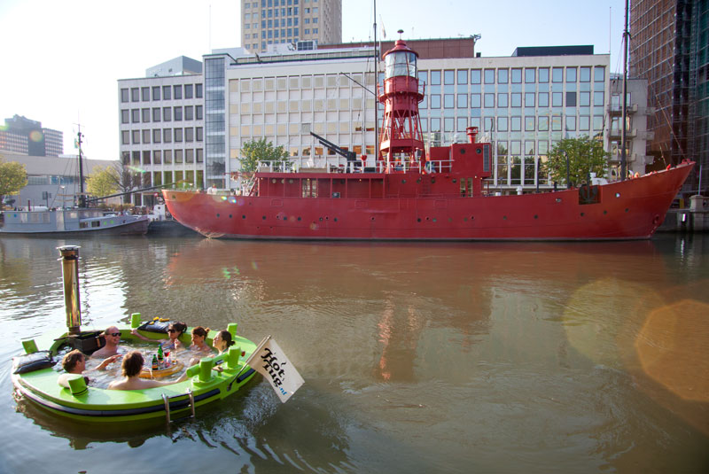 Criada pela holandesa Hot Tug, este jacuzzi ambulante permite-lhe levar entre seis e oito pessoas num passeio pelo rio que pode durar um máximo de oito horas. A temperatura da água dentro do jacuzzi é mantida a 38 graus, aquecida por uma caldeira, mas não há qualquer risco de incêndio. Há até espaço para um frappé e uma garrafa de champanhe. Infelizmente, ainda não há em Portugal. A Hot Tug começou por operar em Roterdão, na Holanda, e agora vai expandir para a capital britânica de Londres.