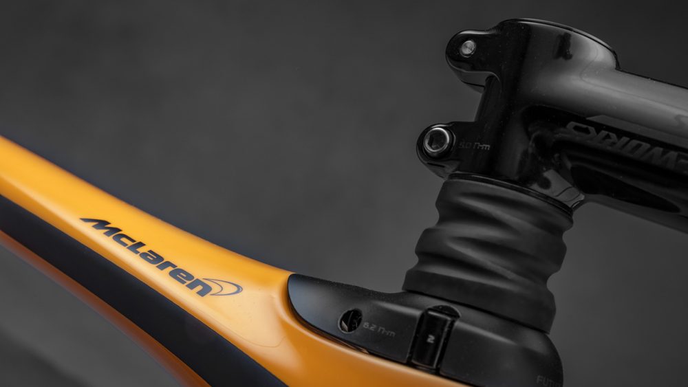 Por isso, a McLaren uniu-se à Specialized para dar corpo a esta bicicleta, batizada McLaren S-Works Roubaix. Com uma estrutura em fibra de carbono e travões de disco, tem mais em comum com um carro de F1 que com uma bicicleta de passeio. Vários elementos, incluindo a pintura cor de laranja e as jantes exclusivas, foram feitos para se aproximarem do design natural de um McLaren.
