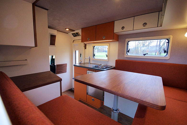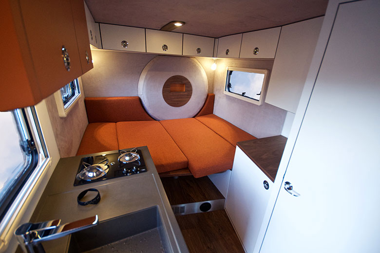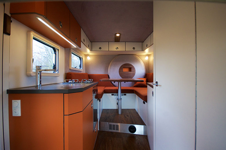 A casa alemã “esticou” este Classe G para um comprimento total de 5,7 metros, enquanto o chassis aguenta um peso bruto de 4,8 toneladas. Isto significa que é possível montar uma cabina com 2,7 metros de comprimento e 1,9 metros de altura, suficiente para criar uma sala de refeições cujos bancos convertem-se numa cama de casal, bem como uma cozinha com fogão a gás e frigorífico de 52 litros e uma casa de banho com duche. A bateria pode ser alimentada por dois painéis solares que geram 280 W.