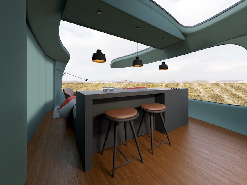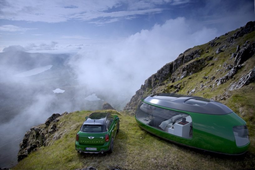 Em vez de estar rodeado por uma estrutura metálica ou de madeira, a MINI tem amplas superfícies vidradas para se poder observar a paisagem, que nunca é permanente. No interior, tem quarto, cozinha, casa de banho e espaço para movimento. Infelizmente, esta caravana nunca vai ser produzida.