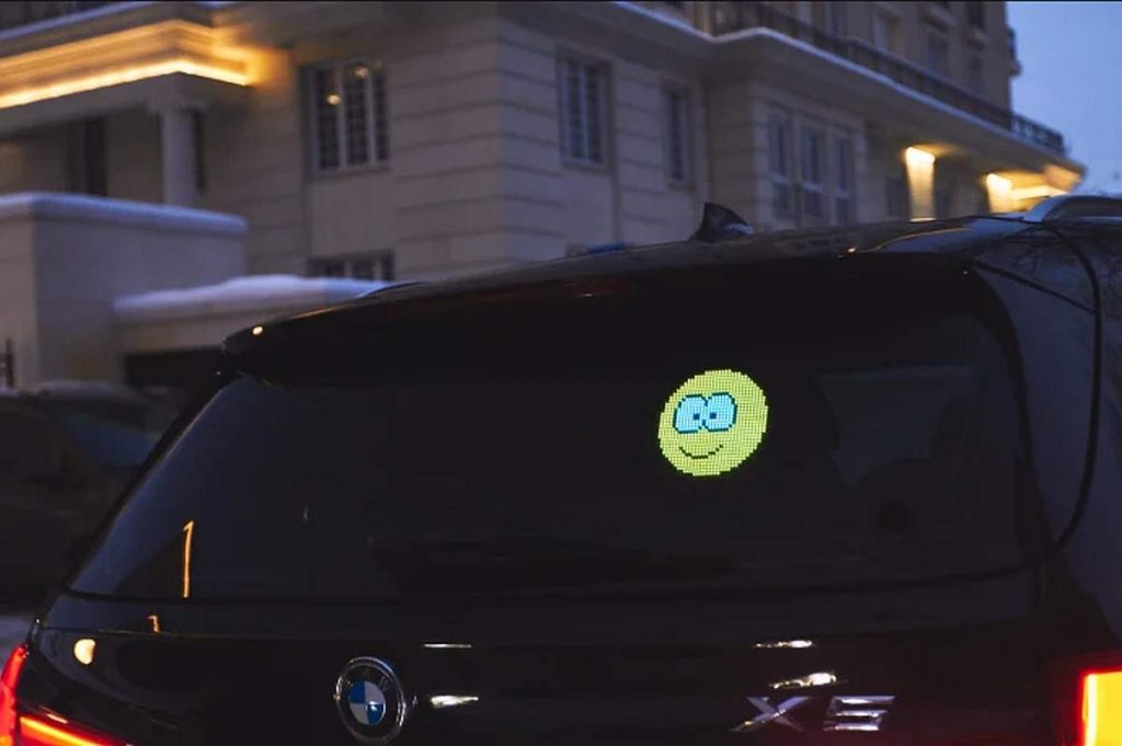 A ideia é de Ilia Pashko, residente em Los Angeles, nos Estados Unidos da América, e é, muito simplesmente, um ecrã de díodos LED que se cola por ventosas no óculo traseiro do veículo e que consegue transmitir uma mensagem para os automobilistas que circulem atrás. O ‘Mojipic’ tem uma dimensão de 140x153x27 mm, sendo ativado depois, ou por aplicação Android ou iOs, ou por voz.