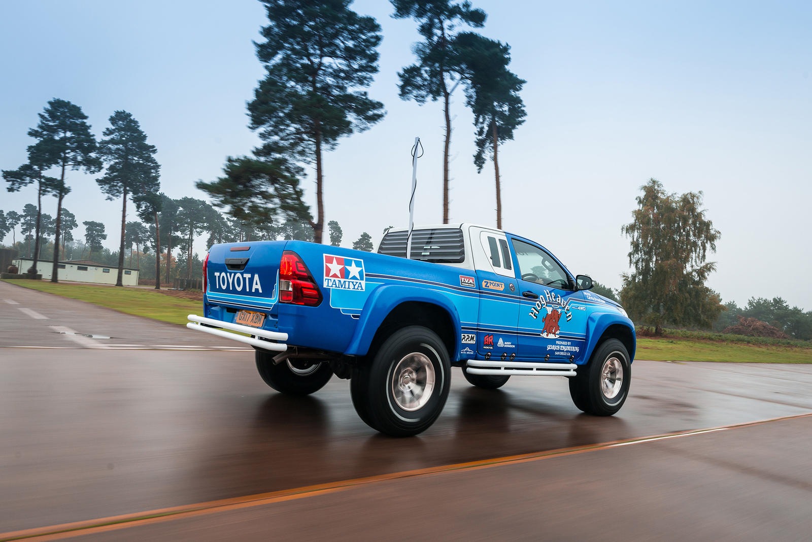 As modificações foram feitas pela Arctic Trucks, que também foi a responsável pelo Polar Hilux que viajou ao Pólo Norte. Pegando na versão de cabine extra, o preparador montou pneus de 35 polegadas na nova Hilux Bruiser, além de alterar a geometria das suspensões e mudar as relações de transmissões. O motor 2.4 D-4D de 150 cv é mantido sem alterações, assim como a tração integral. A antena montada na caixa de carga e o botão “on/off” reforçam a ideia de ser um carro telecomandado. As decorações são reproduções exatas feitas digitalmente.