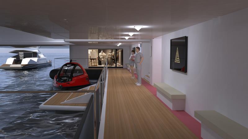 Para viajar entre os vários módulos que compõem a Wayaland, cada um tem um ancoradouro para embarcações individuais ou para veículos aquáticos de maiores dimensões. Mas nalgumas fotografias podem ver-se transportes aéreos, como um helicóptero e até o OVNI criado por Pierpaolo Pazzarini, o IFO.