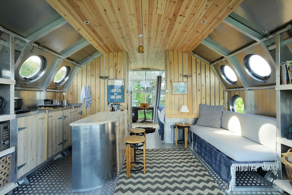 A casa é acolhedora, mas não muito grande, e apenas tem espaço para duas pessoas. As janelas de ambos os lados oferecem o mesmo tipo de vista que era possível encontrar numa aeronave mais leve que o ar. O tema aéreo e naval mantém-se no formato da cozinha, desenhada para parecer uma galé de uma embarcação. Para maximizar o espaço, a cama está localizada numa posição elevada e a casa de banho também é compacta.