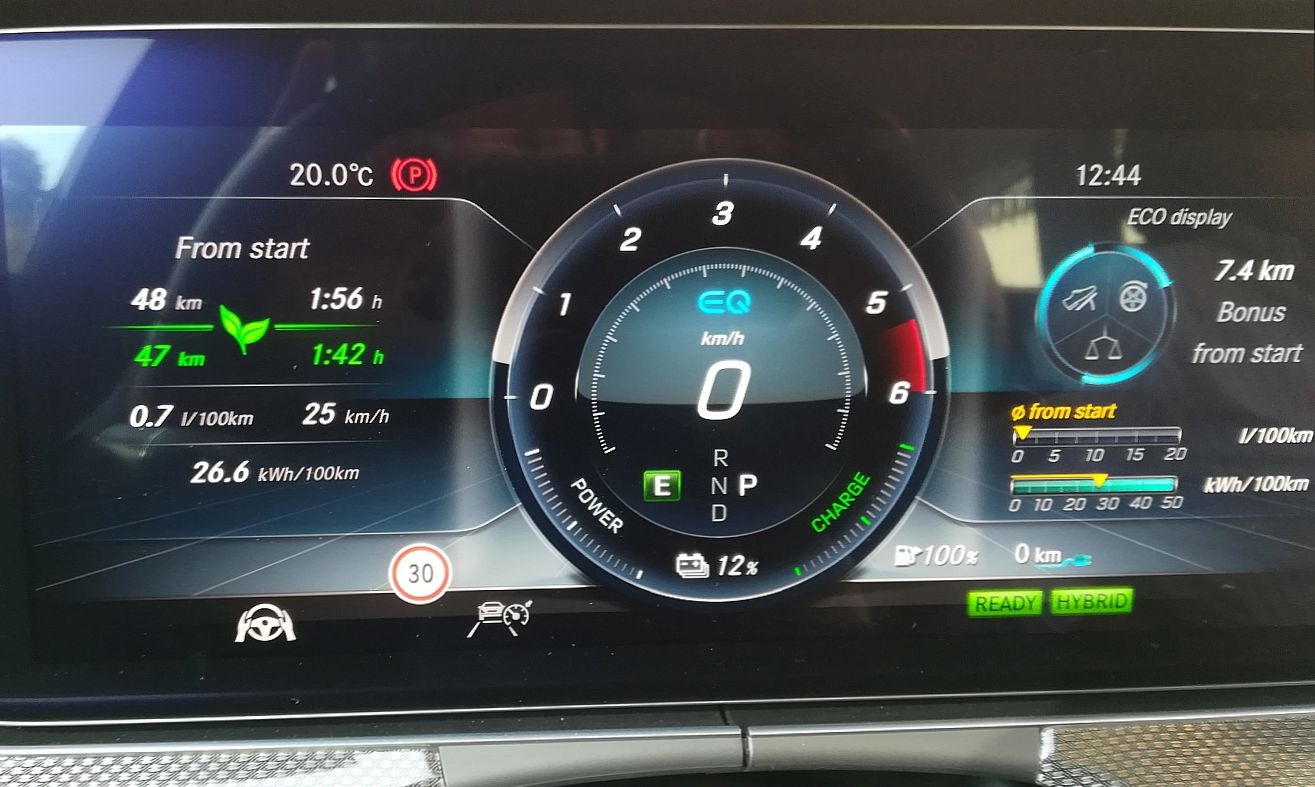 Ao fim de 48 quilómetros, o E 300 de tinha um resultado de 47 quilómetros feitos em modo elétrico, ficando ainda com 12% de carga na bateria.