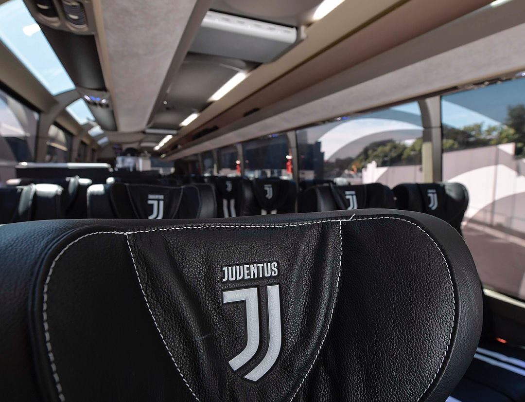 O interior foi pensado para oferecer máxima comodidade aos jogadores da formação de Turim: todos os bancos têm revestimento em pele com as iniciais do clube.