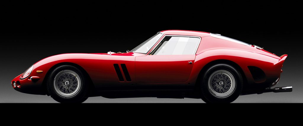 Este Ferrari dispensa apresentações. Apesar de ser um modelo praticamente novo quando comparado com o 250 GT SWB, a marca conseguiu aproveitar algumas falhas nos regulamentos para homologar a sua nova arma para as corridas. E com este 250 GTO devidamente “Omologato”, a Ferrari venceu o campeonato durante três anos consecutivos entre outras vitórias de categoria, nomeadamente nas 24 Horas de Le Mans. Foram produzidos 33 exemplares, dos quais quatro foram, posteriormente, alterados com a configuração do GTO de 1964 e um chassis (#4713GT) recebeu uma singular carroçaria “LMB”.
