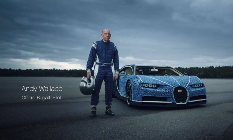 Mas, noutra particularidade, este modelo conta com um motor de 5.3 CV e 92 Nm de binário, o que lhe permite atingir uma velocidade máxima de 20 km/h. Noutros apontamentos, dispõe de luzes LED, volante amovível e spoiler traseiro funcional – tudo em Lego – que aumentam a exclusividade desta unidade.Para testar todo o conjunto, a Lego pediu o auxílio de Andy Wallace, conhecido piloto de competição (foi vencedor das 24 Horas de Le Mans) e também de testes que foi mesmo um dos responsáveis pelo desenvolvimento dinâmico do Chiron. O real, claro. Assim, modelo e piloto marcaram encontro em Ehra Lessien, pista de testes junto a Wolfsburgo, na Alemanha, para colocar os primeiros metros de estrada nas rodas, que são do mesmo tamanho das do original. Este Chiron foi também o primeiro modelo da Lego Technic a ter propulsão própria.