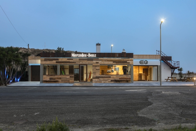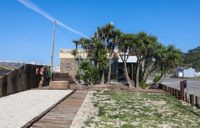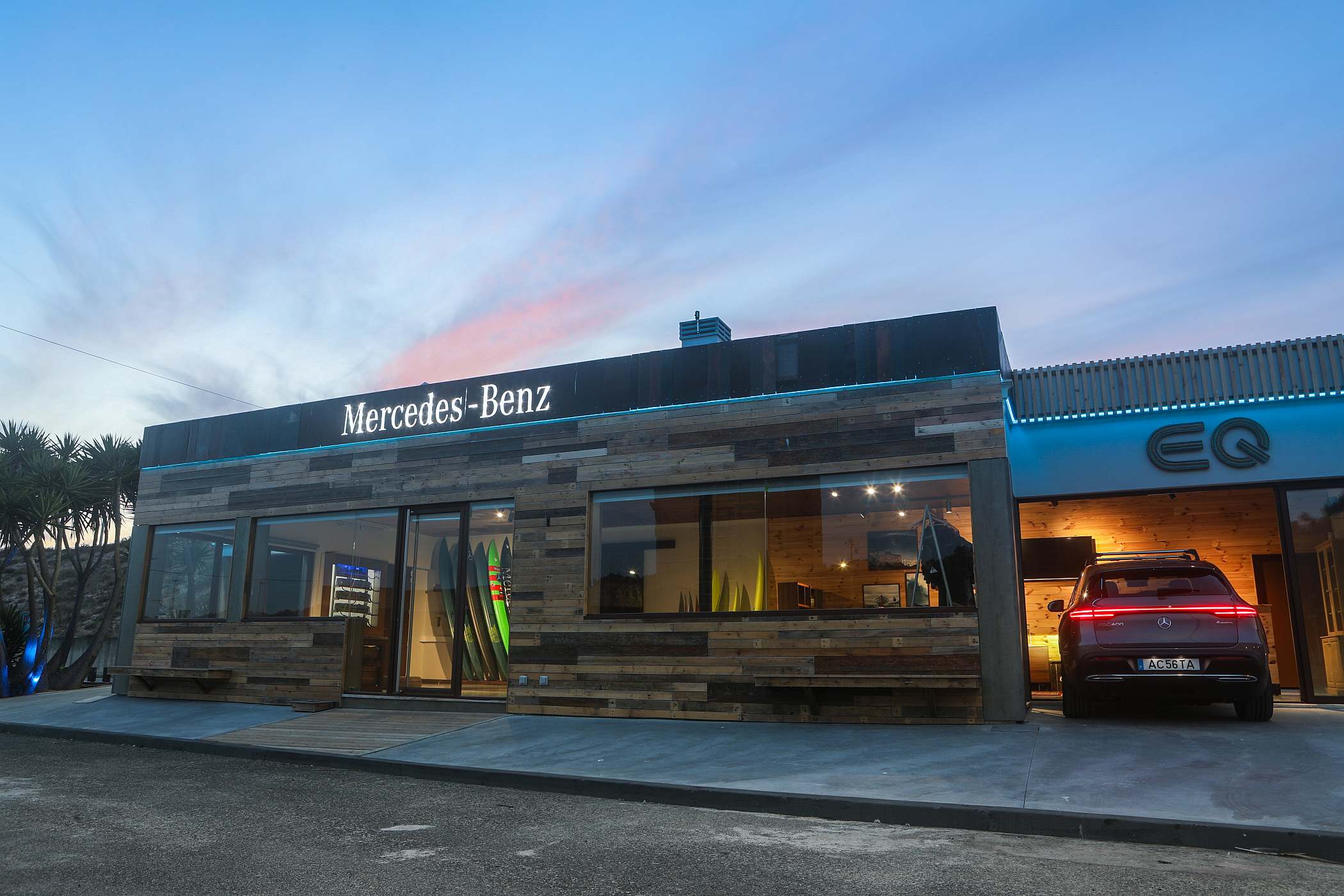Com a Nazaré a tornar-se ponto de encontro para os surfistas, a Mercedes-Benz aproveitou para conceber um espaço que servisse de ponto de encontro de gostos e de experiências entre surfistas e adeptos da marca, recorrendo unicamente a materiais reutilizados ou reciclados (madeiras, restos de cordas ou cintos) que, caso contrário, teriam o lixo como destino. O Mercedes-EQ Lounge nasce assim como exemplo do que é a sustentabilidade associada à estratégia da própria companhia alemã, como explicou o CEO da Mercedes-Benz Portugal, Holger Marquardt, durante a conferência de apresentação daquele lounge.