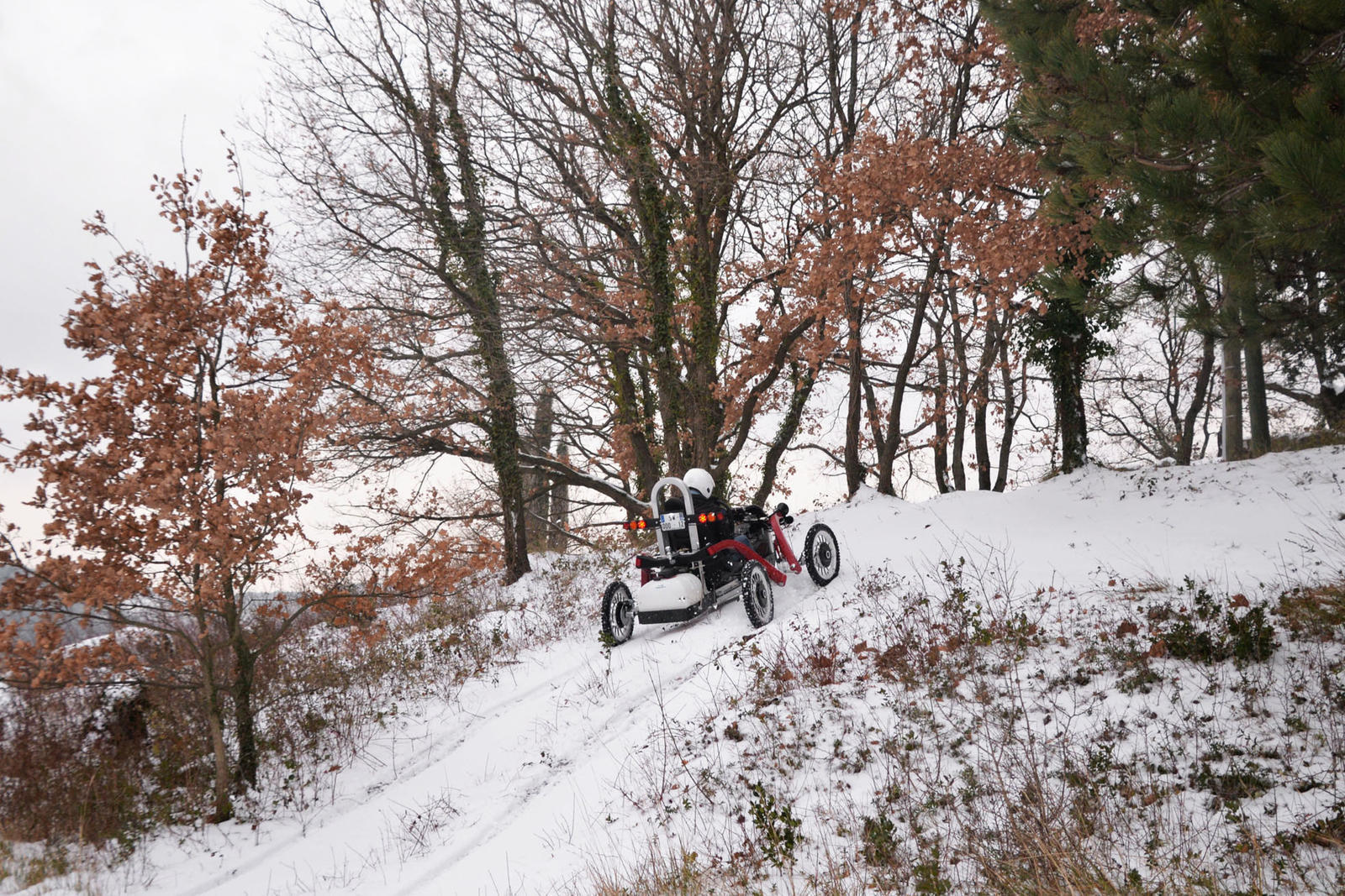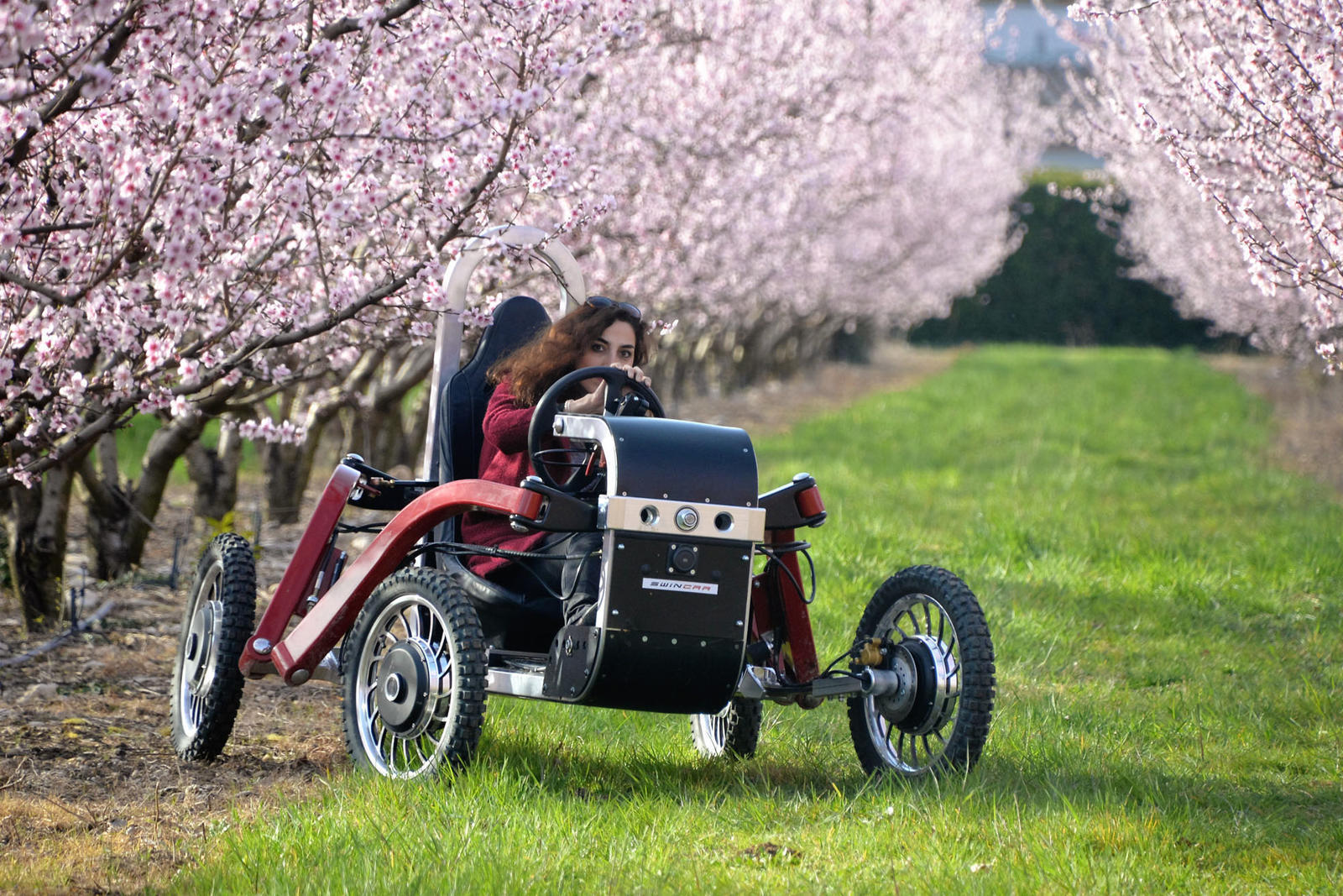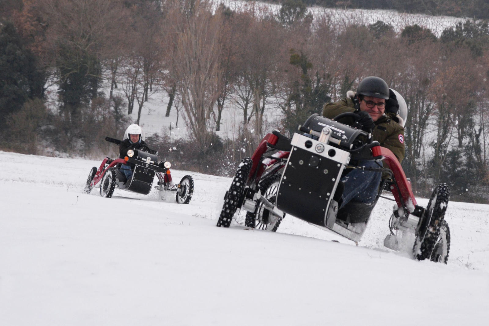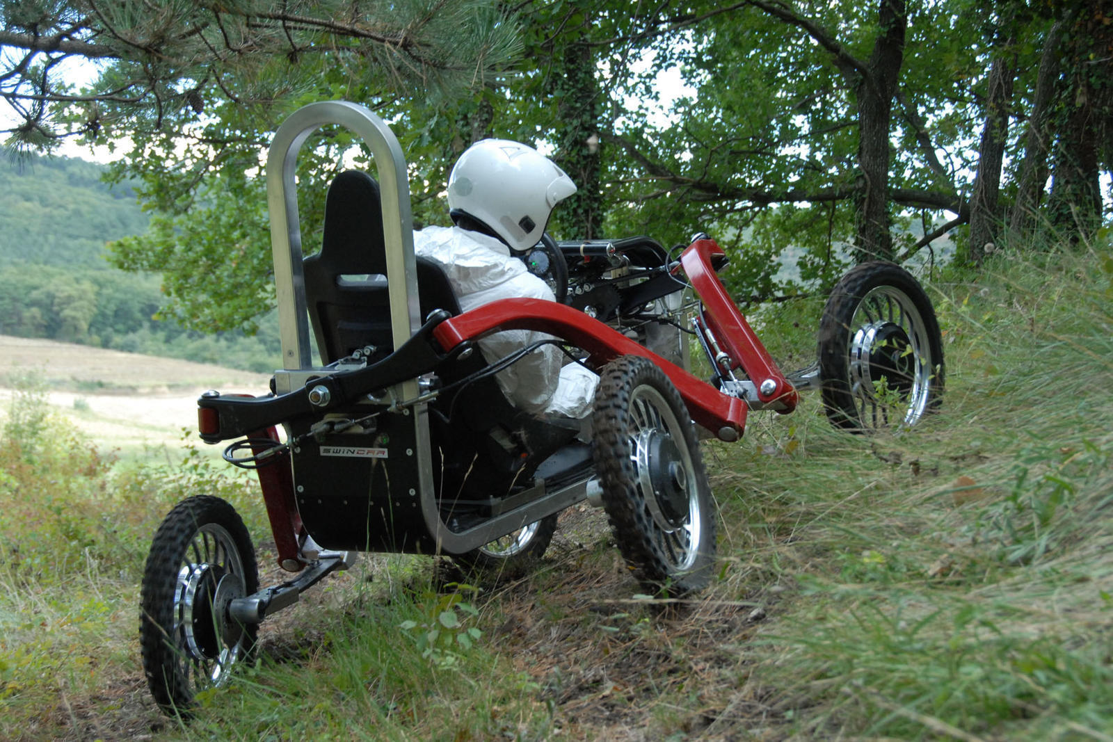 Poderia pensar-se que um quad faria o serviço, mas é demasiado pesado e alto. Mas os franceses da Swincar conseguiram criar um veículo que combina a funcionalidade todo-o-terreno de um quad com a agilidade e altura de um kart. O resultado é um veículo com uma suspensão adaptável à maioria dos obstáculos, que se inclina na direção que queremos tomar.