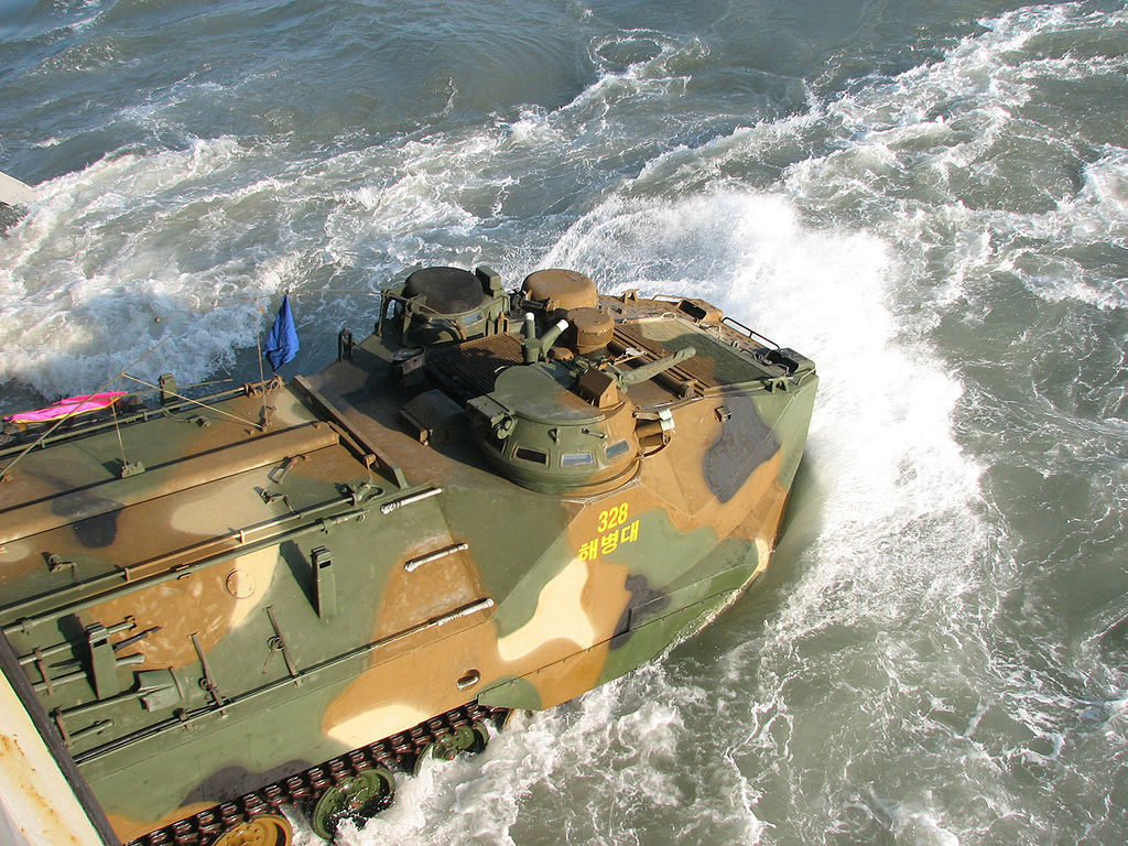 Oficialmente, este veículo chama-se AAV-7A1, e está disponível em três variantes, P7A1 (transporte de pessoal, a mais comum), C7A1 (centro de comando, com torre de comunicações) e R7A1 (veículo de reparação). Concebido em 1972 pela FMC (hoje uma subsidiária da BAE Systems, especializada em equipamento militar), foi renovado em 1982 com um novo motor Cummins, nova transmissão, motores elétricos para a elevação do armamento e suspensão renovada com novos amortecedores. Estas modificações garantiram a sua juventude perene.