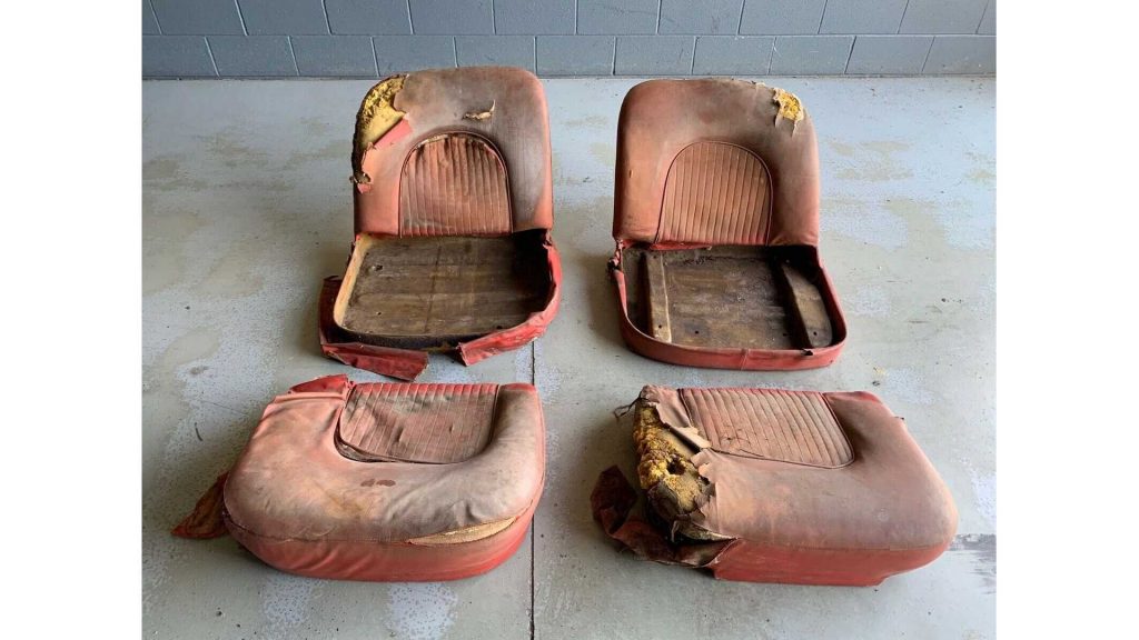 De acordo com os especialistas da CarBuzz, os velhos bancos em fibra de vidro revestidos a tecido vermelho pertenciam ao primeiro protótipo do Corvette construído sob a designação EX-52 Project Opel, em dezembro de 1952.