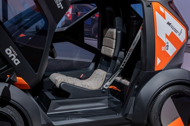O primeiro dos veículos altamente eficientes em energia e espaço para assegurar a mobilidade pessoal é o Mobilize Duo, que pode ser considerado como um sucessor do Twizy. Este micro-veículo 100% elétrico foi adaptado para a mobilidade na cidade, oferecendo dois lugares no interior, em tandem, com um estilo interior altamente irreverente que é caracterizado por um toque da cultura ‘pop’. A Renault apelida esse design de ‘Ghetto Blaster’, recuperando um pouco da ideia dos anos 1980 com os rádios que se levavam ao ombro.Apesar de minimalista, o Duo não deixa de apresentar tecnologia relevante, como o acesso ‘keyless’, suporte para smartphones, porta USB-C, Bluetooth e updates remotos ‘Over the Air’. Na segurança, destaca-se por oferecer airbag e portas de abertura superior, não se intrometendo, por exemplo, em passeios ao abrir.