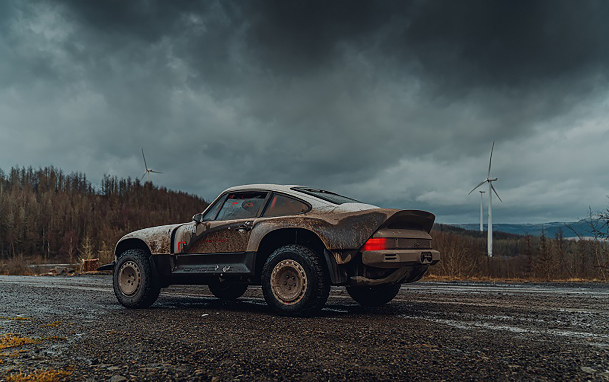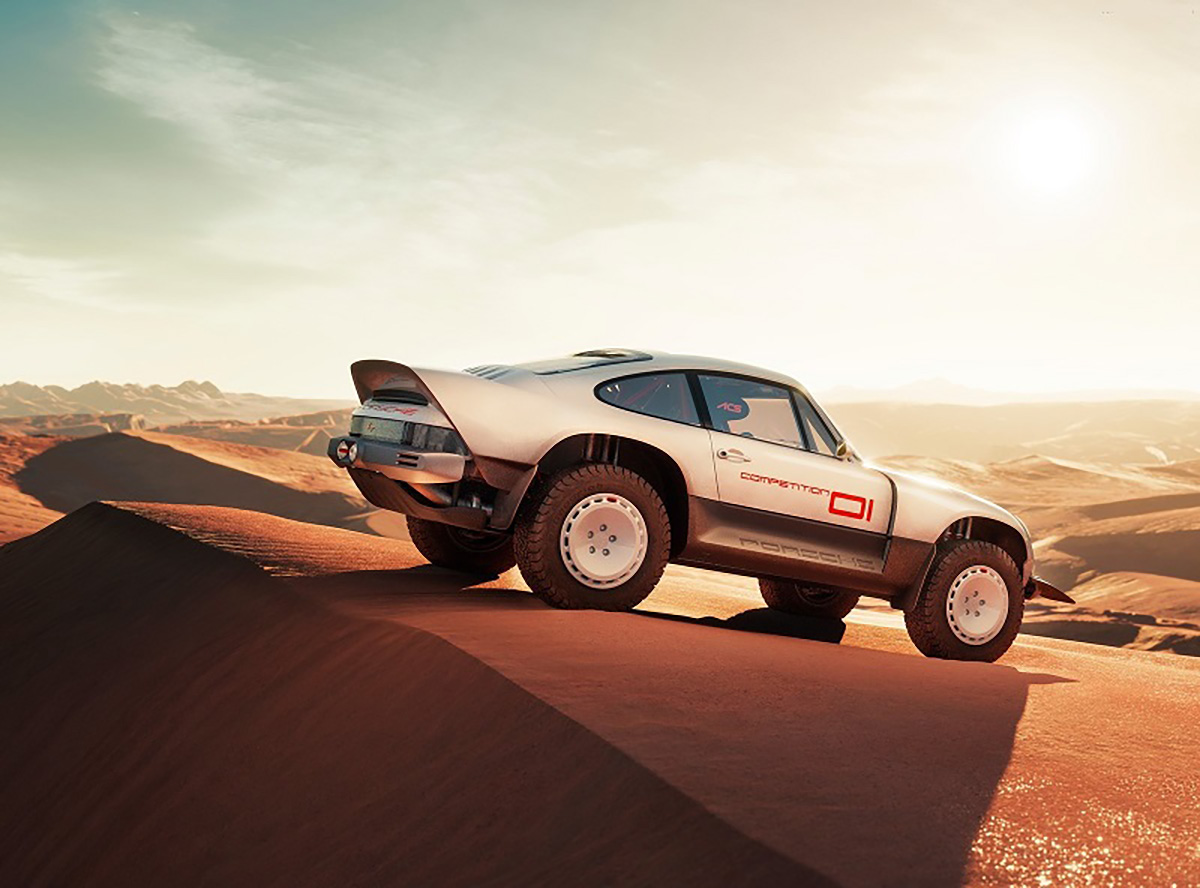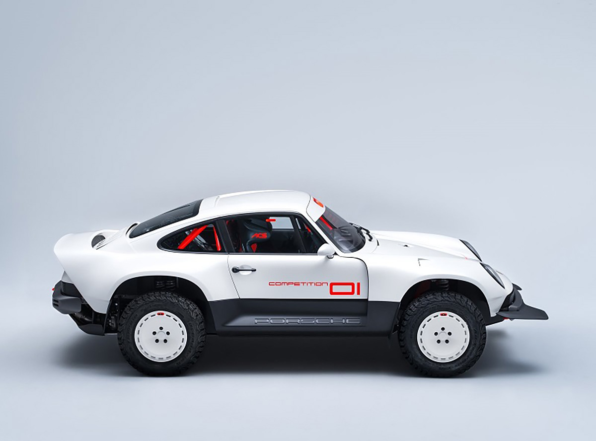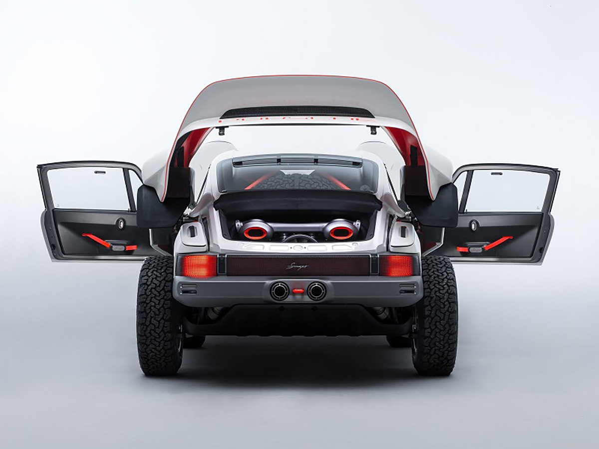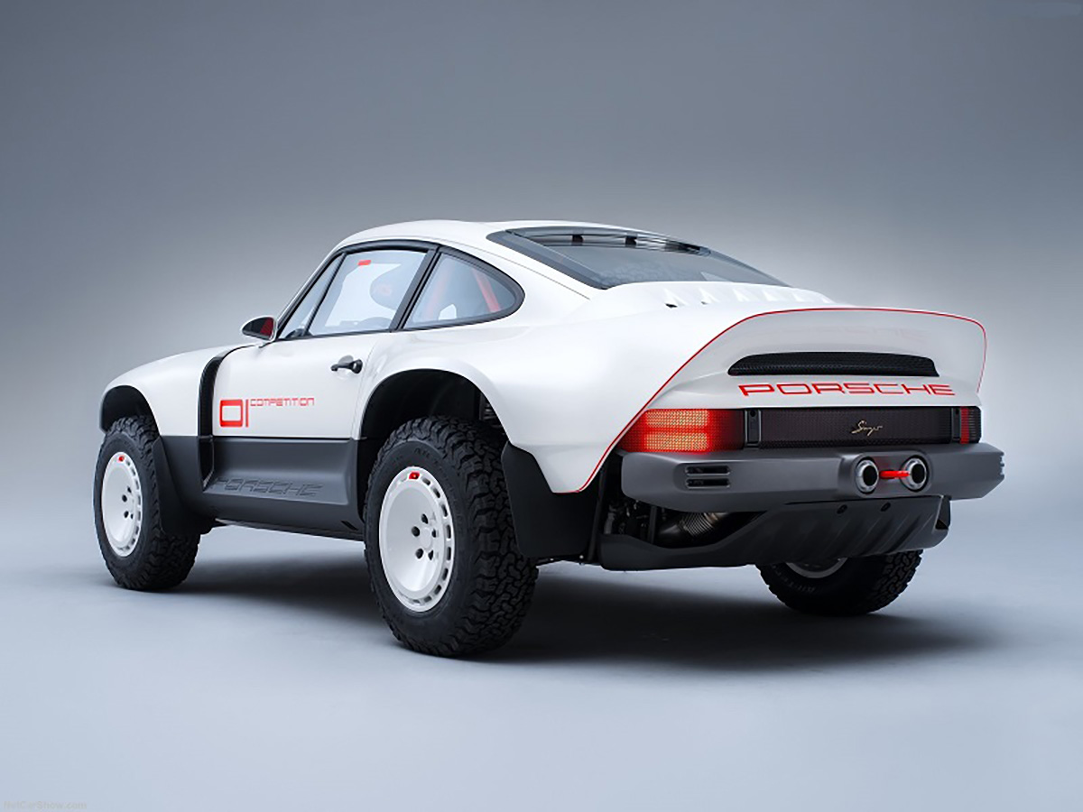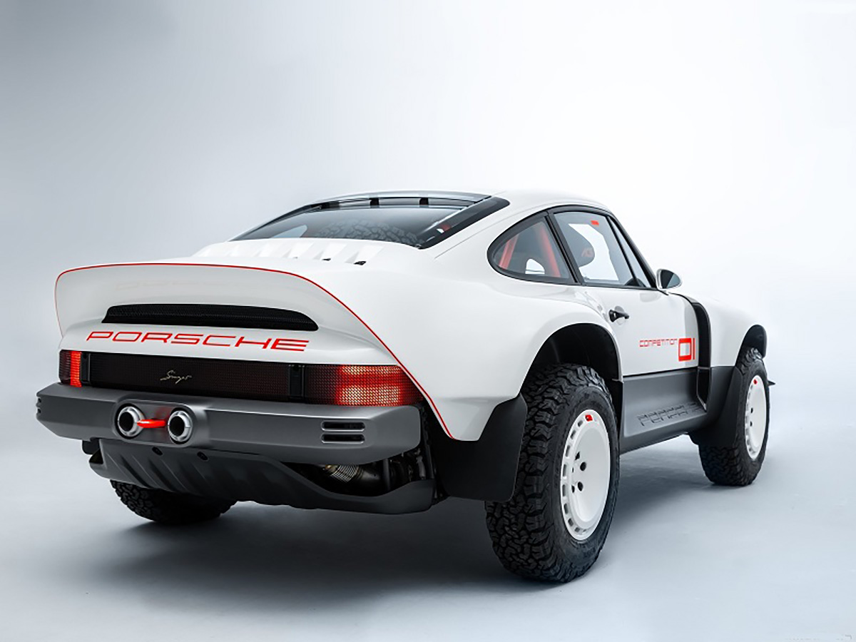 Com base num Porsche 911 da geração 964 de 1990, a Singer inspirou-se nos saudosos Porsche 953 e 959 que competiram no Dakar, elevando a altura ao solo, além de aplicar jantes forjadas de 16” com pneus BF Goodrich K02 de todo-o-terreno e umas generosas protecções laterais com a inscrição Porsche. Na traseira podemos encontrar um spoiler integrado no desenho da carroçaria, algo inspirado no 959. Os painéis da carroçaria são em fibra de carbono e foram desenhados para a sua fácil reparação e substituição. Tudo foi elaborado com a colaboração do britânico Richard Tuthill, especialista em 911 de rali.