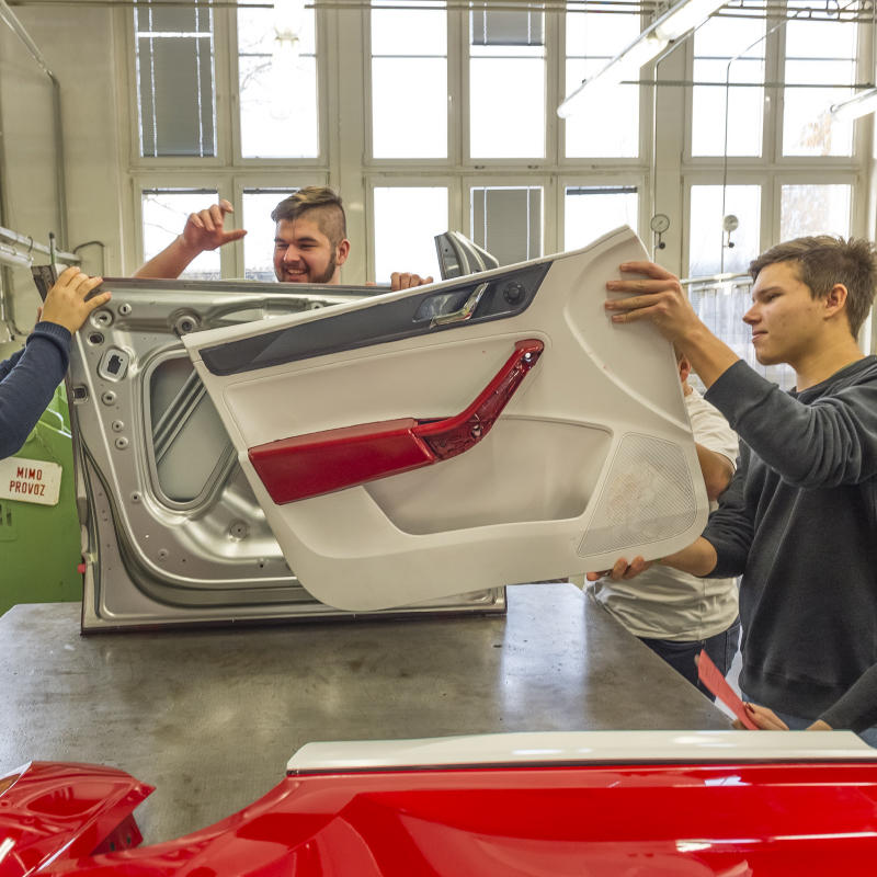 Na escola vocacional, fundada em 1927, os jovens estudantes recebem formação sobre funções técnicas durante três a quatro anos. Atualmente, mais de 900 estudantes estão a completar um total de 13 programas educacionais a tempo inteiro (cinco de quatro anos e oito de três anos) e dois programas de ampliação. Além disso, cerca de 60 trabalhadores da Skoda estão a ampliar as suas qualificações como parte doutros programas de formação. Já a escola vocacional para Engenharia Mecânica forma parte da Academia da Skoda, fundada em abril de 2013 para oferecer uma formação integral a estudantes e trabalhadores indo ao encontro das necessidades da companhia.