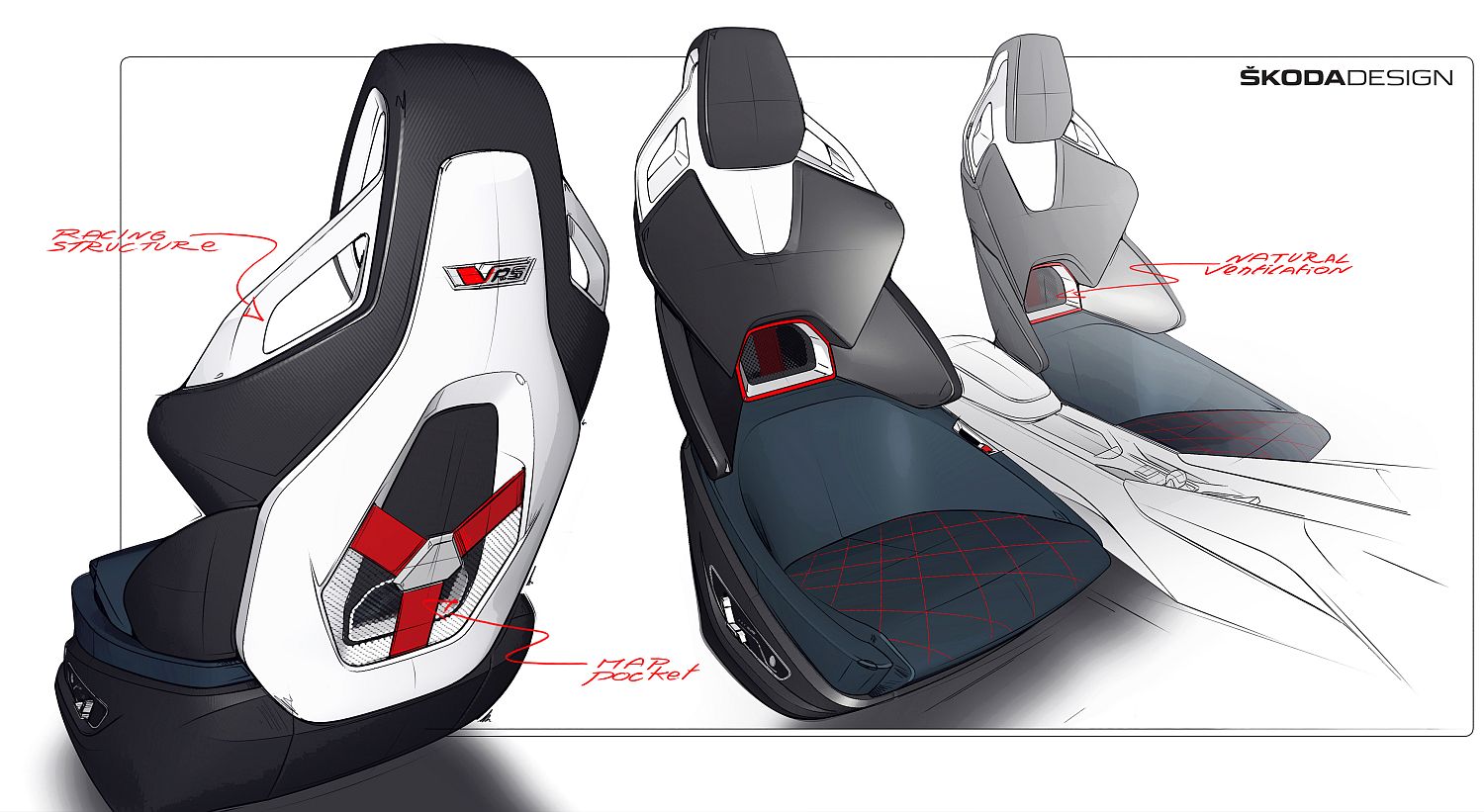 Com o Vision RS, a Skoda pretende demonstrar a sua visão (naturalmente) para um modelo desportivo de aparência evolucionária, mas com elevado nível de consciência ambiental: outro exemplo que não a motorização híbrida é o recurso a materiais de origem Vegan.