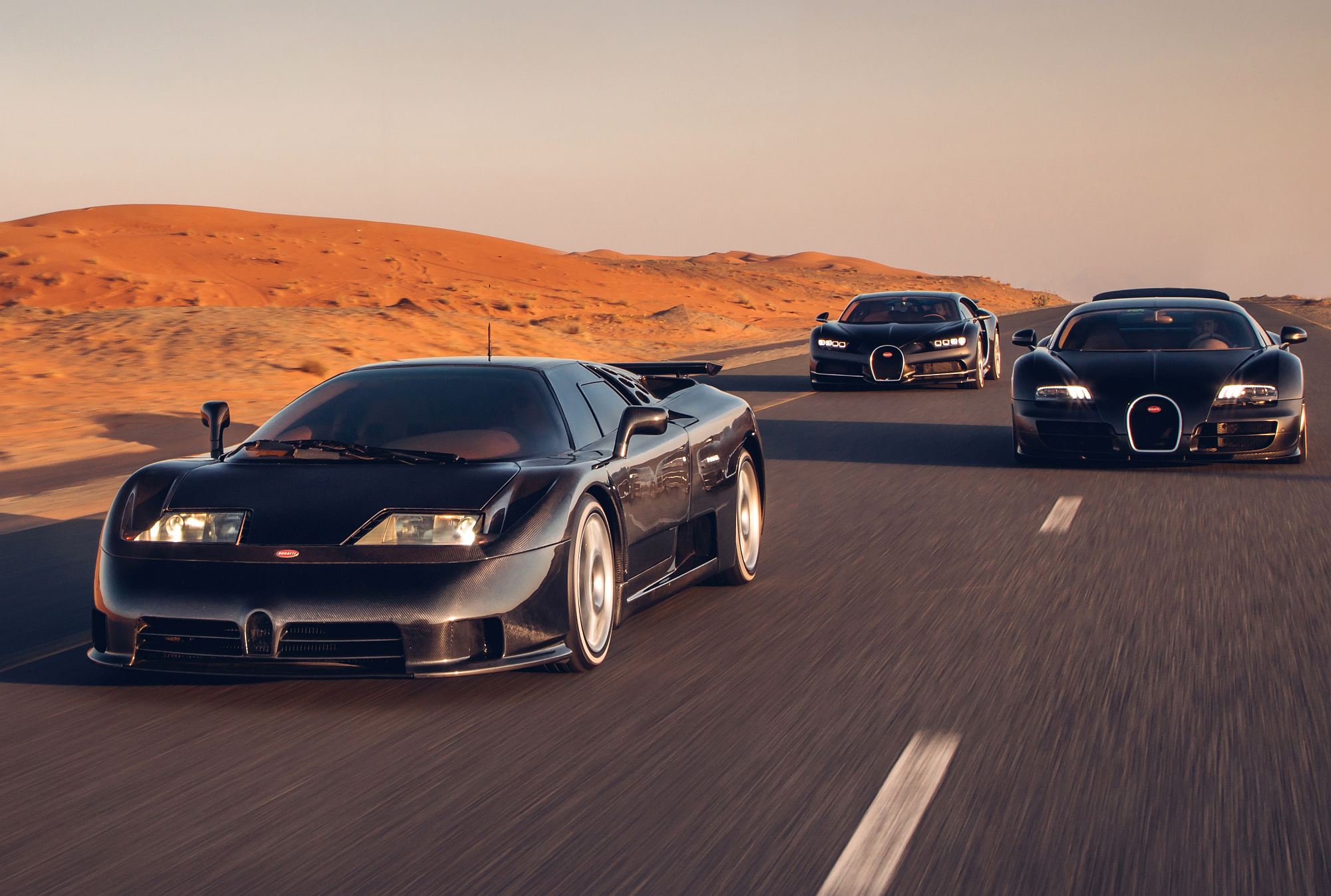 Tração integral, quatro turbocompressores e estrutura feita em carbono: estes são os ingredientes comuns utilizados pela Bugatti nos seus hiperdesportivos ao longo das últimas décadas, afigurando-se como modelos de colecionador que poucos conseguem acumular na sua garagem. Atenta a essa particularidade, a marca juntou os três exemplares de excelência numa viagem única até ao Dubai