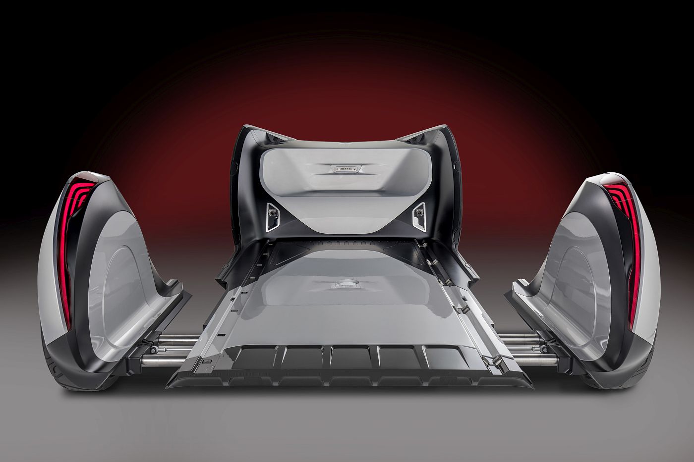 Os módulos podem ser mudados manual ou automaticamente, com este último a demorar apenas alguns minutos. A carroçaria é acoplada numa plataforma autónoma, o que pode significar que, no limite, a estrutura de base pode circular sem qualquer módulo e de forma isolada rumo a um destino para lhe ser montada uma carroçaria. Uma vez mais, sempre atendendo à procura de funções. A marca garante que a segurança está assegurada por uma série de componentes redundantes para funções vitais como a aceleração, travagem ou direção.