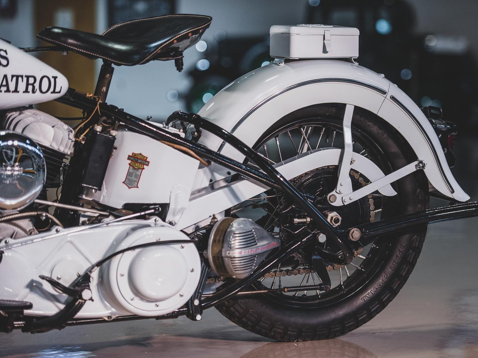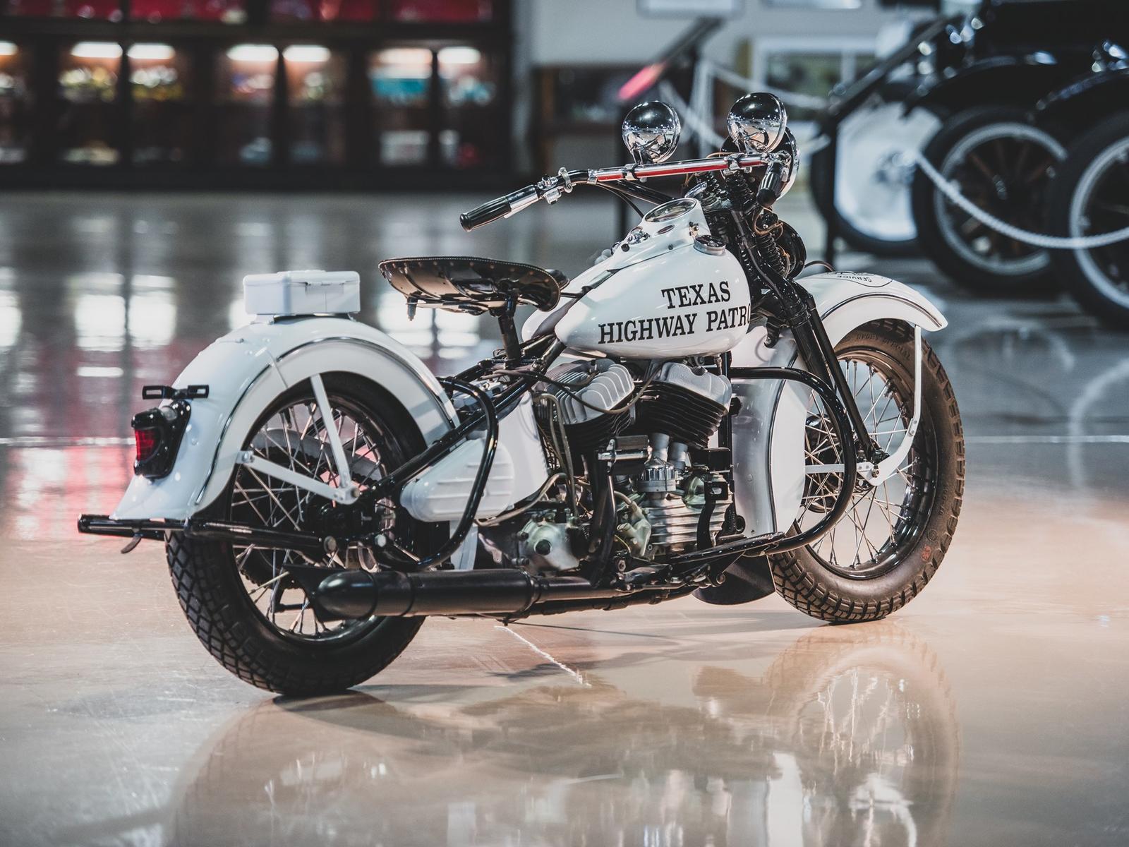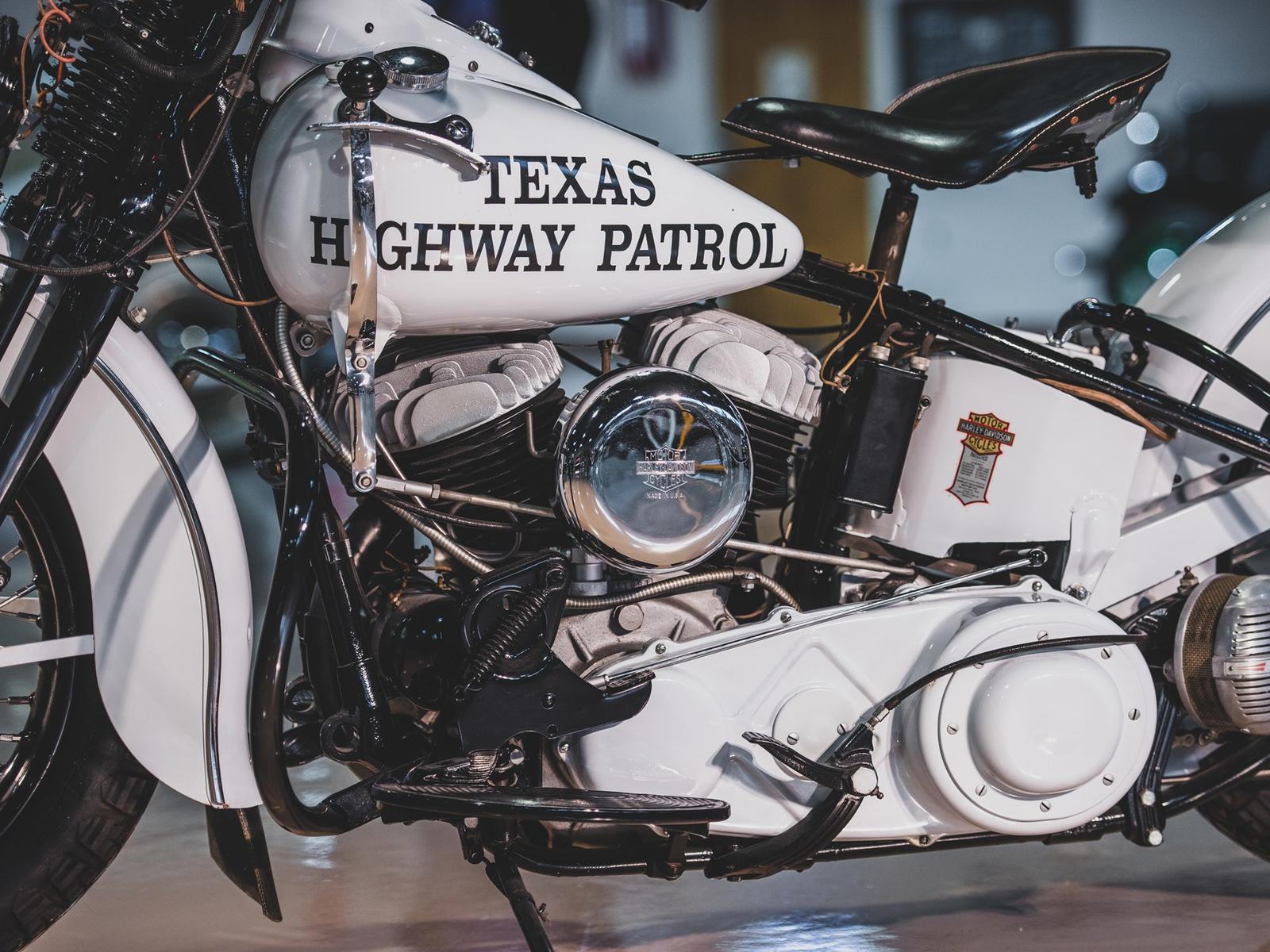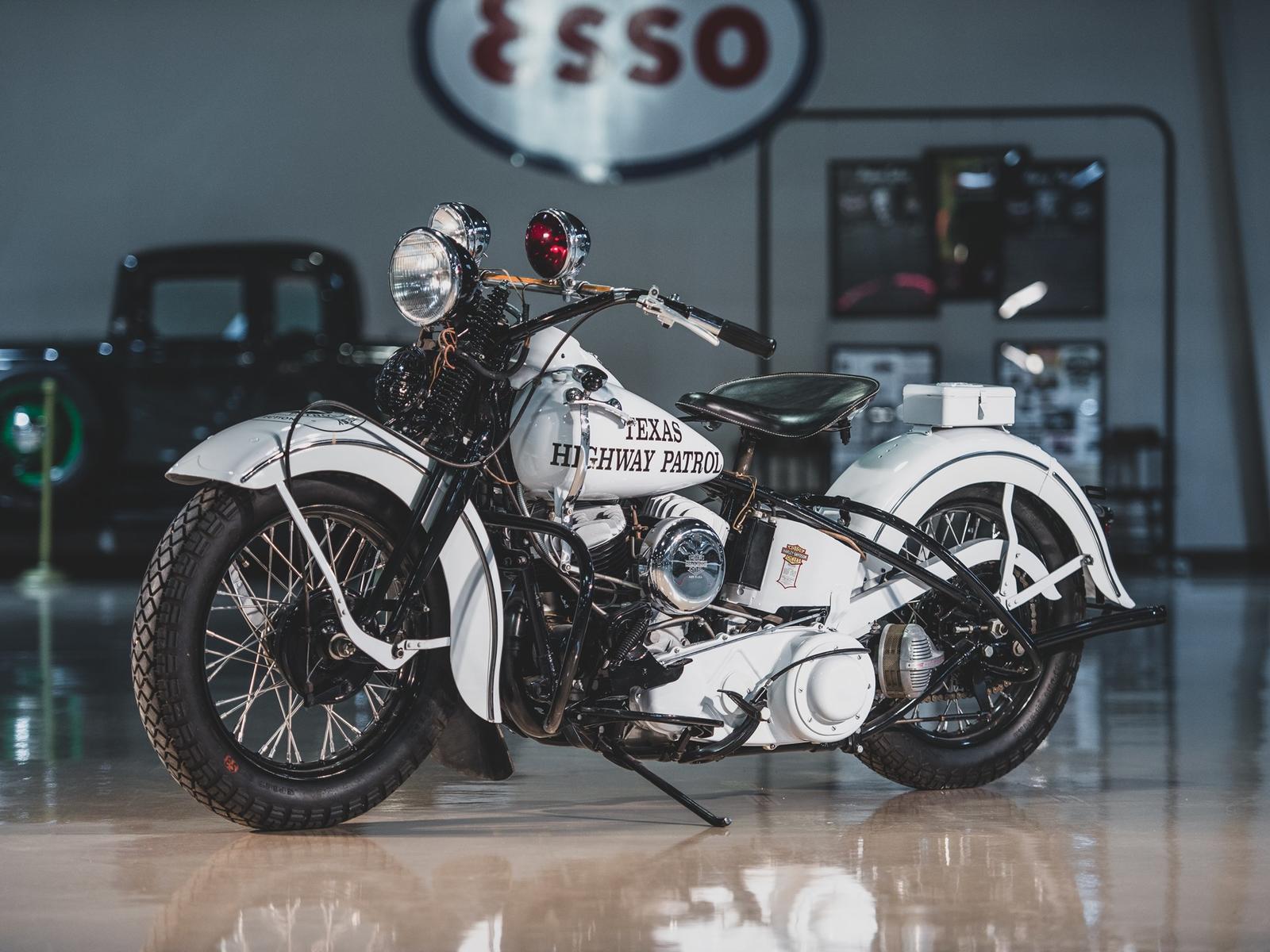É o caso deste exemplar de 1942 de uma Harley-Davidson UL. Utilizando o lendário motor V2 “flathead”, com 1210 cc, esta Harley de polícia foi colocada em serviço pela Patrulha de Trânsito do Texas, aproveitando o baixo consumo natural dos veículos de duas rodas para lidar com o racionamento de gasolina, imposto à população civil dos Estados Unidos durante a duração da Segunda Guerra Mundial. Durante o conflito, este exemplar foi usado como escolta de veículos militares, e depois para controlo de tráfego.