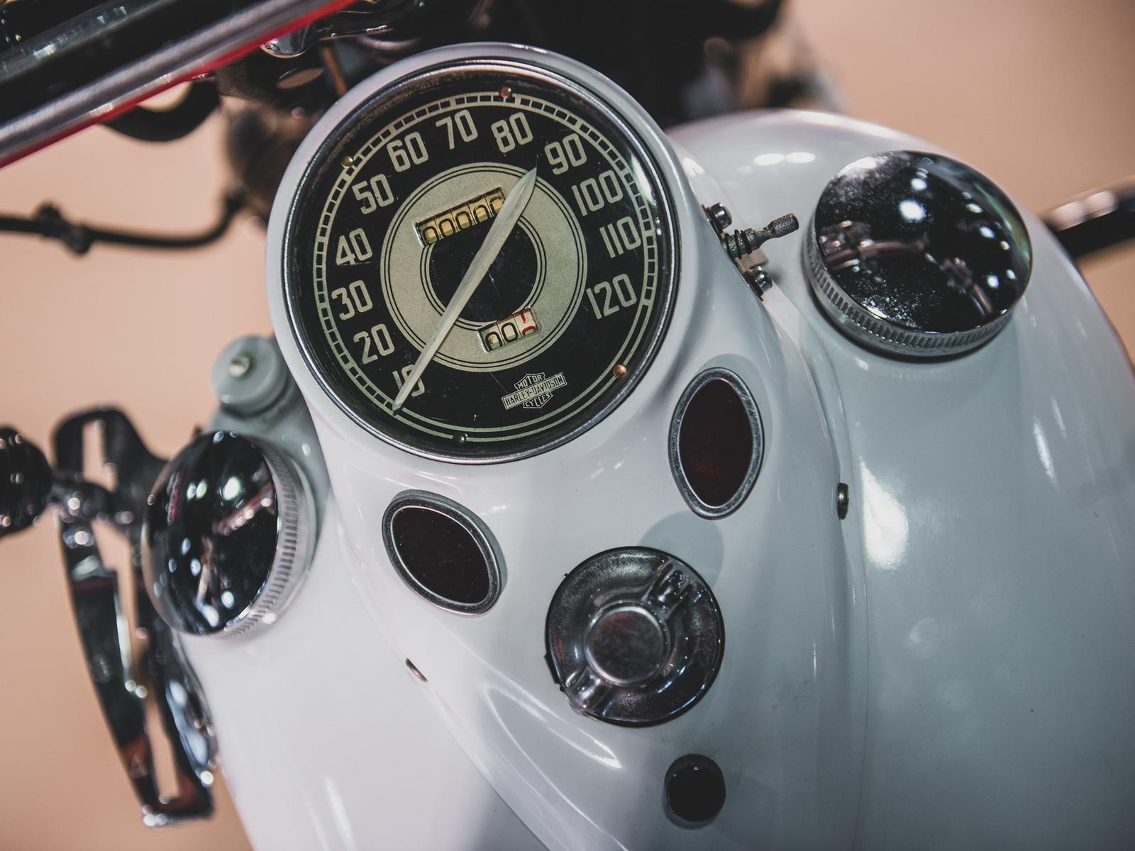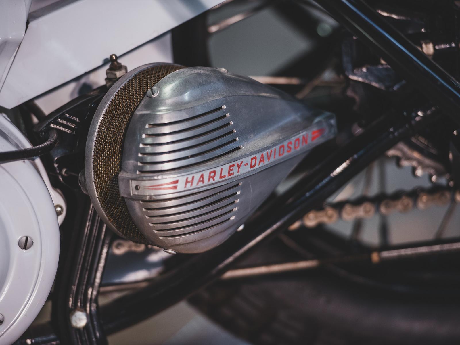 Esta não é uma simples Harley “flathead” pintada com as cores da polícia. O tradicional depósito de combustível metálico deu lugar a um reservatório pintado de branco, enquanto as jantes de 16 polegadas de série foram substituídas por jantes de 18 polegadas, que lhe permitiam atingir velocidades máximas mais elevadas sem gastar mais combustível. Também foi-lhe montada uma sirene ativada pelo pé do agente da autoridade.