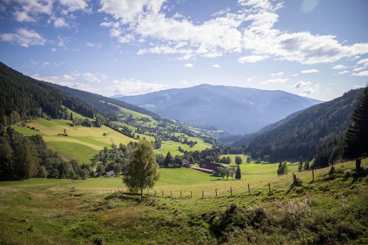 A chegada ao hotel Grizzly apresenta logo a envolvência dos próximos dias: montanhas e vales com várias intensidades de verde, nesta zona de Lungau, que faz parte da Rede Mundial de Reservas da Biosfera da Unesco.