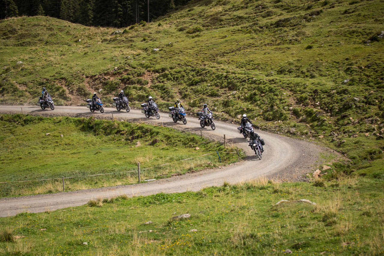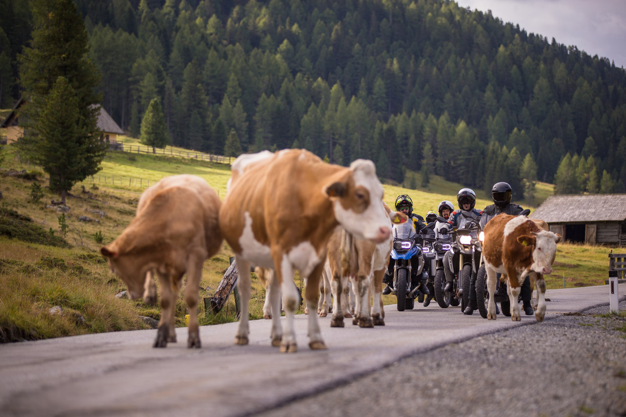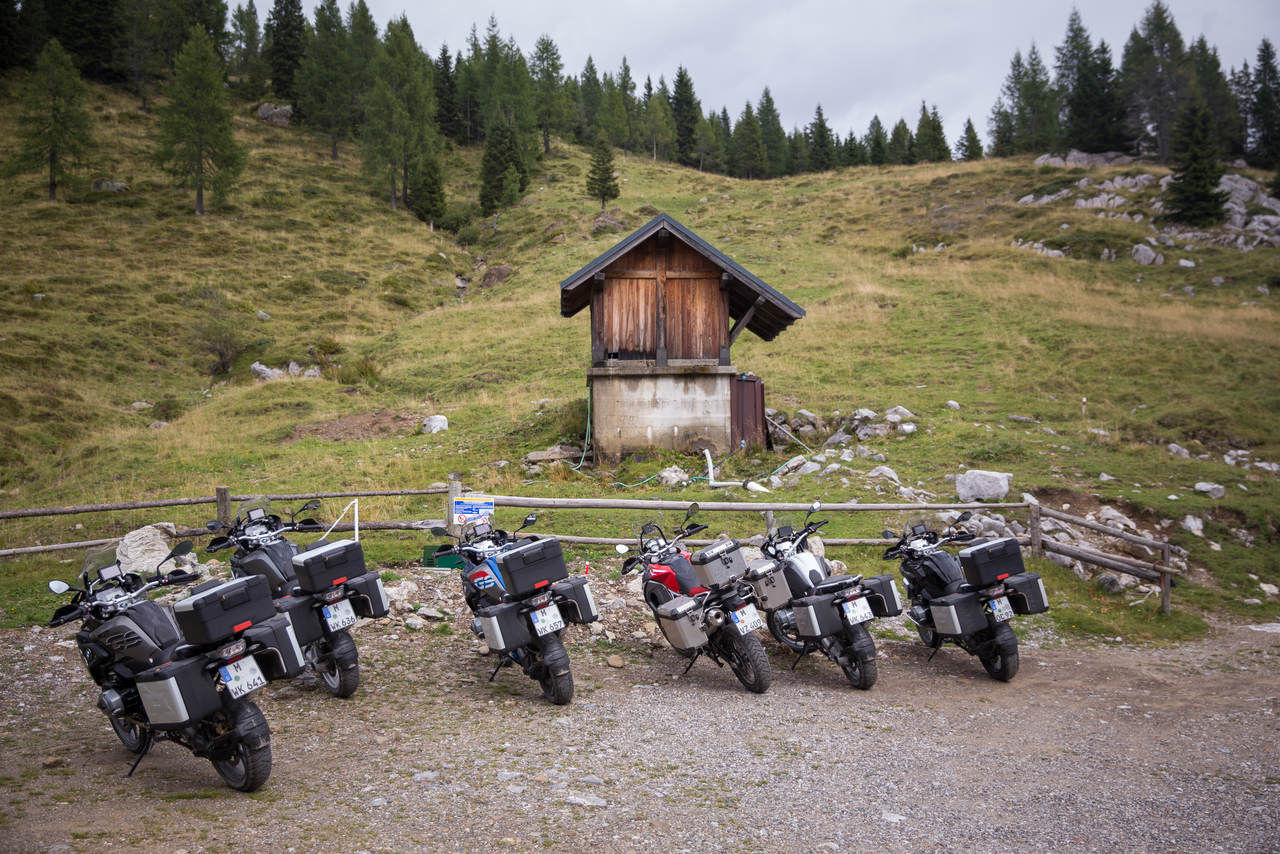Atravessamos os Alpes Cárnicos (Carniche, em italiano) – que ganharam este nome graças à província romana de Carnia – sempre em bom ritmo, coisa que o guia percebeu desde cedo ser do agrado deste grupo lusitano. Gozar a paisagem sim, mas sem deixar de explorar a GS em algumas das melhores curvas da Europa. O regresso a estradas austríacas acontece pelas estreitas estradas da do Passo Stalle, uma montanha com 2052 metros, o que obriga a atenção redobrada, porque o ritmo continua muito dinâmico…