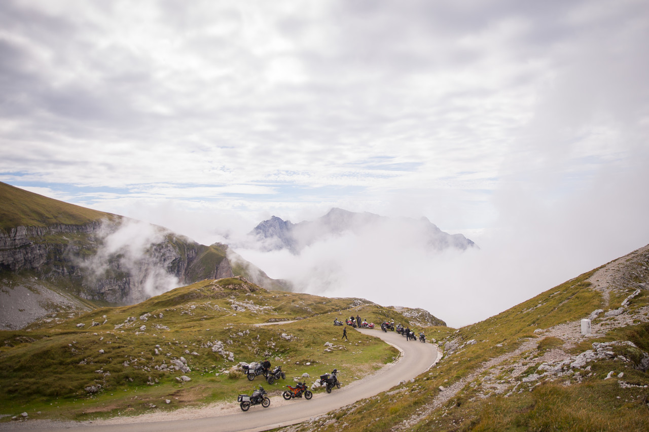 No caminho, cruzamos uma concentração de Harley-Davidson, o que torna a subida para o monte Mangart, uma das mais movimentadas até ao momento. De Kranjska Gora até à passagem de Vršič contam-se cerca de 50 curvas em gancho, é conhecida pela estrada russa em alusão aos 10000 prisioneiros russos de guerra que trabalharam nas obras de melhoramento em 1915. É muito gancho, com o cheiro dos travões sobrepor-se ao perfume alpino, mas nem por isso o ritmo abrandou. O guia ditava a velocidade e a comitiva fazia por obedecer, com inegável prazer.