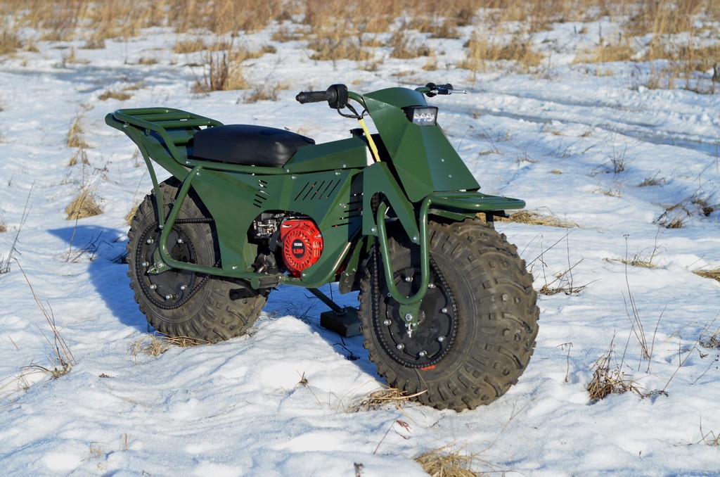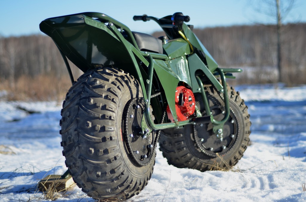 Criada na Rússia, a Tarus é uma moto de duas rodas motrizes, com a potência transmitida também à roda da frente, que tem a sua própria corrente de transmissão. Isto oferece alguma aderência adicional, caso haja dificuldades com as rodas traseiras. Tem também pneus muito mais largos do que o normal para uma roda disto, com largura 25×12, funcionando com uma profundidade de 45 cm de neve. Mas mesmo que fique presa, pesando 93 kg, é fácil de mover à mão.