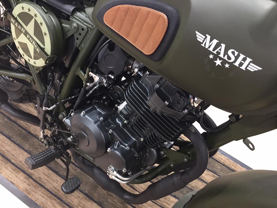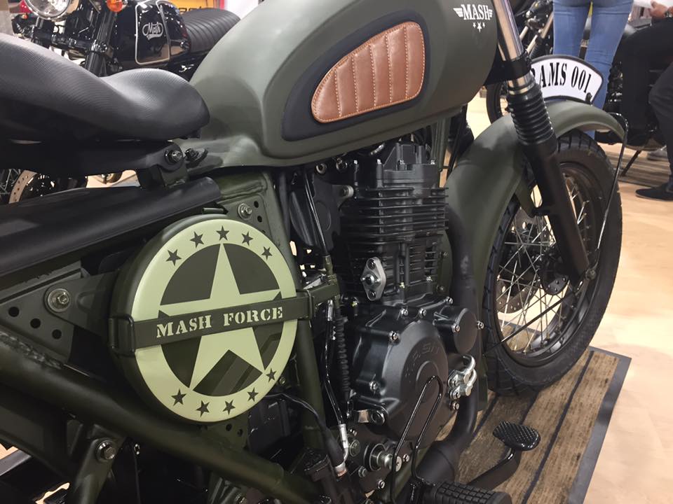 De facto, este novo produto do construtor francês tem tudo o que seria necessário para uma missão militar durante a Segunda Guerra Mundial, incluindo uma pintura verde, matrícula montada sobre o para-lamas dianteiro, decorações militares, dois bancos separados e sacolas laterais. Só não vai precisar de se armar em Indiana Jones pois, em vez de levar na sacola antiguidades preciosas que precisam de ser defendidas de soldados nazis, pode levar apenas o que necessita para qualquer longa viagem normal. A Mash Motors também está a aproveitar a coincidência de nome com a antiga série de televisão americana “M.A.S.H.”, passada na Guerra da Coreia, para divulgar a sua nova criação.