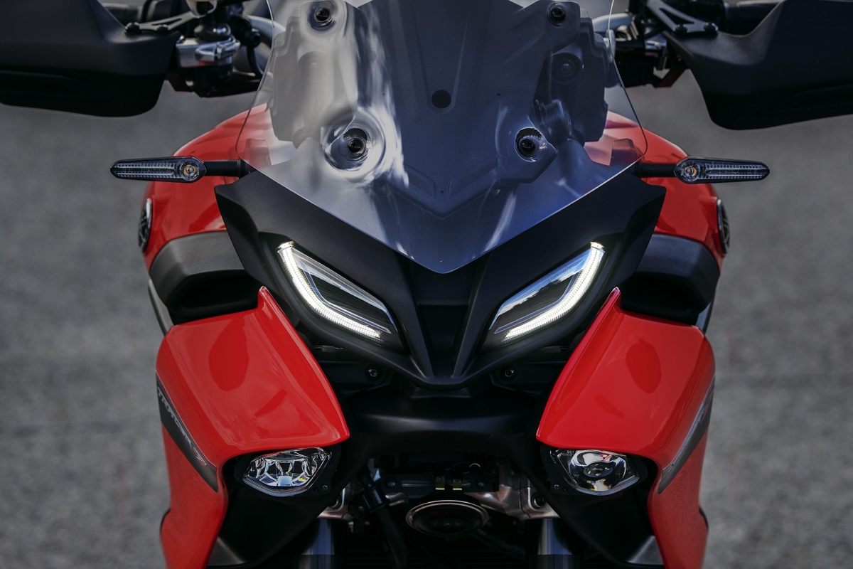 Se no interior as mudanças são muitas o exterior também foi alvo de melhorias: a moto apresenta agora uma silhueta mais compacta, com novas carenagens, e o design das óticas em LED aproximam a frente das superdesportivas da marca. Uma vez montados na moto é impossível não encontrar semelhanças entre o novo painel de instrumentos TFT, dividido em dois e os olhos do pequeno robô Wall-E do filme de animação da Disney. Quer tenha sido propositado, ou não, pelos engenheiros da Yamaha, ajuda a criar empatia e assim que ligamos a moto os dois ecrãs de 3,5 polegadas cada ganham vida, mostrando toda uma série de informações cuja apresentação pode ser personalizada pelo condutor.
