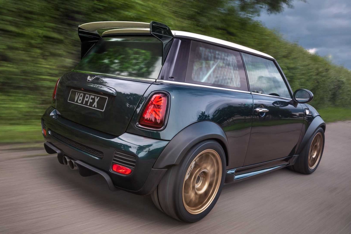 Depois de quatro longos anos de preparação, o modelo está finalmente pronto para a estreia dinâmica no Festival de Velocidade de Goodwood 2021. É um Mini Cooper S à vista desarmada, mas com um coração V8 do BMW M3. Debaixo do capot do icónico modelo britânico está nada menos do que o famoso bloco 4.0 V8 S65 da quinta geração M3 a debitar 420 CV às 8.300 rpm e 400 Nm de binário máximo às 3.900 rpm. Um poço de força e disponibilidade, que também conta com os préstimos da caixa DCT de sete velocidades original do M3.