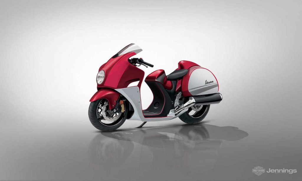 O site Jennings Harley-Davidson levou a cabo um trabalho criativo em que o estilo da Vespa á adaptado para dar origem a alguns veículos de duas rodas bastante interessantes.