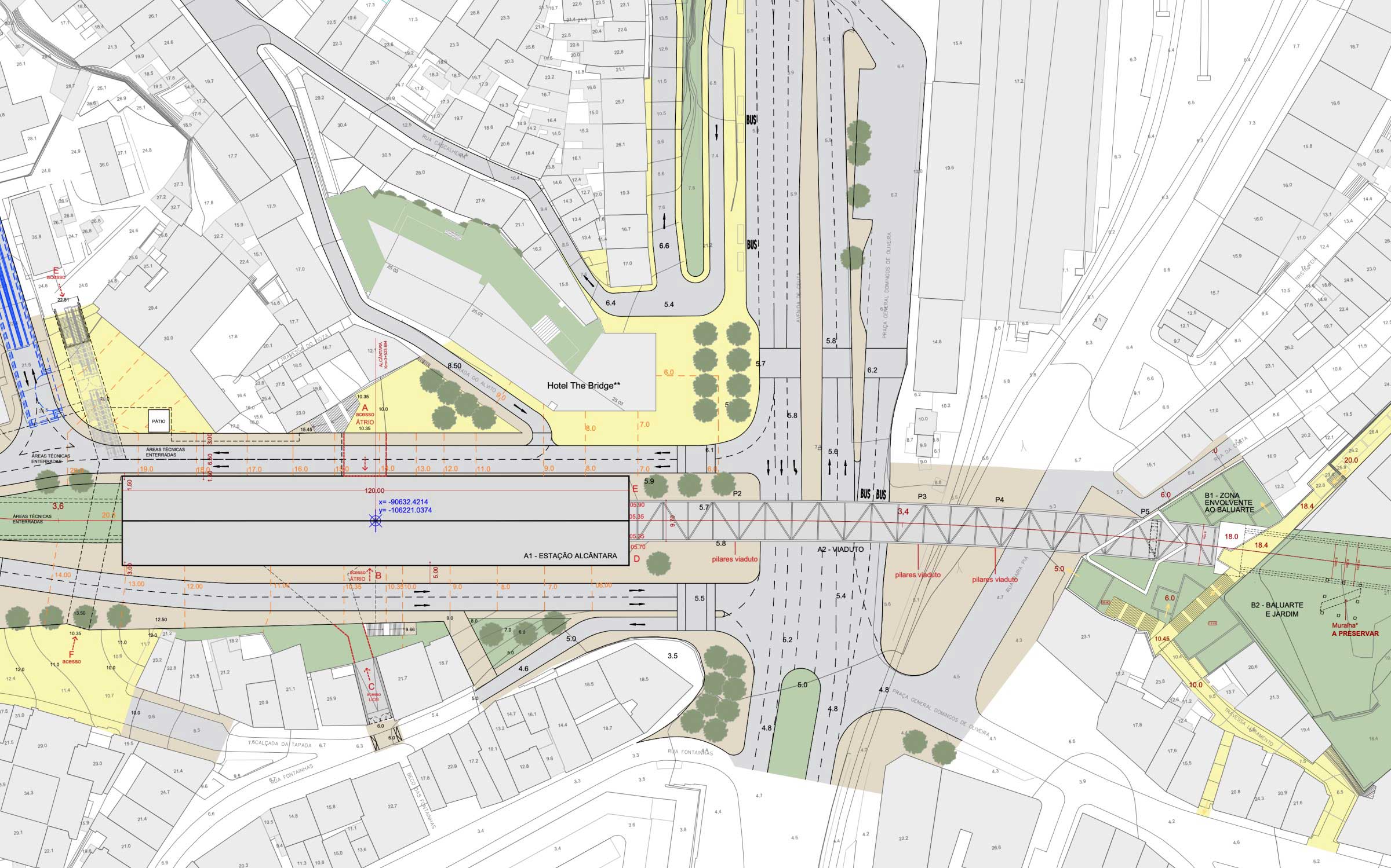 As imagens renderizadas agora divulgadas não mostram as alterações do espaço público já previstas para a zona de Alcântara, e que deverão ser concretizadas com a chegada do Metro: entre as mudanças, está prevista, por exemplo, uma reformulação do acesso à auto-estrada, um espaço verde junto ao Baluarte do Livramento (onde se iniciará o viaduto), e uma ligação pedonal e viária à futura estação de comboios do Alvito, que se encontra parcialmente construída.