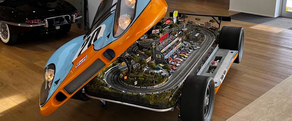 Quando se junta um Porsche 917 e uma pista de slot cars, resultado é o que está presente neste artigo. Pois é, este Porsche 917 é na verdade uma réplica, com dimensões semelhantes à escala real e que esconde no seu interior uma pista de slot cars de duas vias, inspirada na pista de La Sarthe onde são realizadas as 24 Horas de Le Mans.