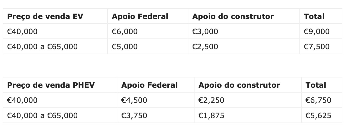 Quais são os apoios atuais na Alemanha para EV e PHEV?