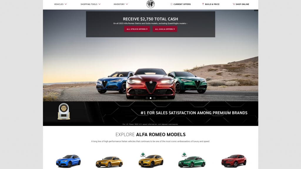 De acordo com a pesquisada da J.D. Power, a Alfa Romeo tem atualmente o melhor site automóvel de marcas, com um índice de satisfação médio de 724 pontos em 1000 possíveis, o significa uma subida de 13 pontos face à avaliação realizada há um ano.