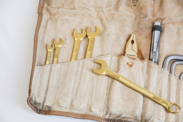 A companhia francesa Facom foi a responsável pelo fabrico exclusivo para a McLaren deste ‘kit’ de ferramentas, obedecendo à filosofia de baixo peso/máxima eficácia do próprio desportivo britânico. Do esforço para cumprir esse objetivo resultou este conjunto de peças fabricadas em titânio, com acabamento dourado único.