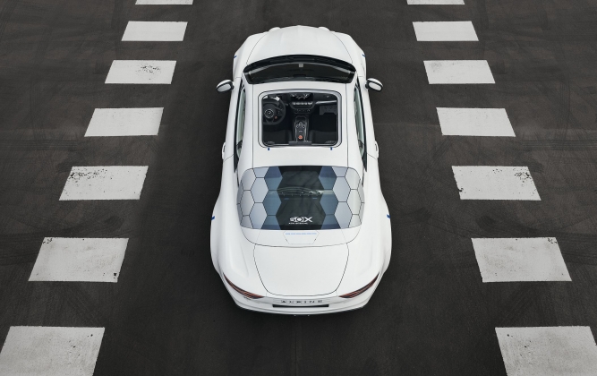 Uma das novidades deste elétrico é o seu tejadilho com capacidade de ficar ‘descapotável’. A dificuldade do projeto passava, sobretudo, por encontrar a solução ideal para integrar rapidamente um telhado amovível na estrutura do A110. Os engenheiros da Alpine imaginaram assim uma solução simples e leve, sem afetar a rigidez na produção A110, com dois telhados “injetados” com carbono reciclado. Um componente concebido e construído inteiramente em casa.
