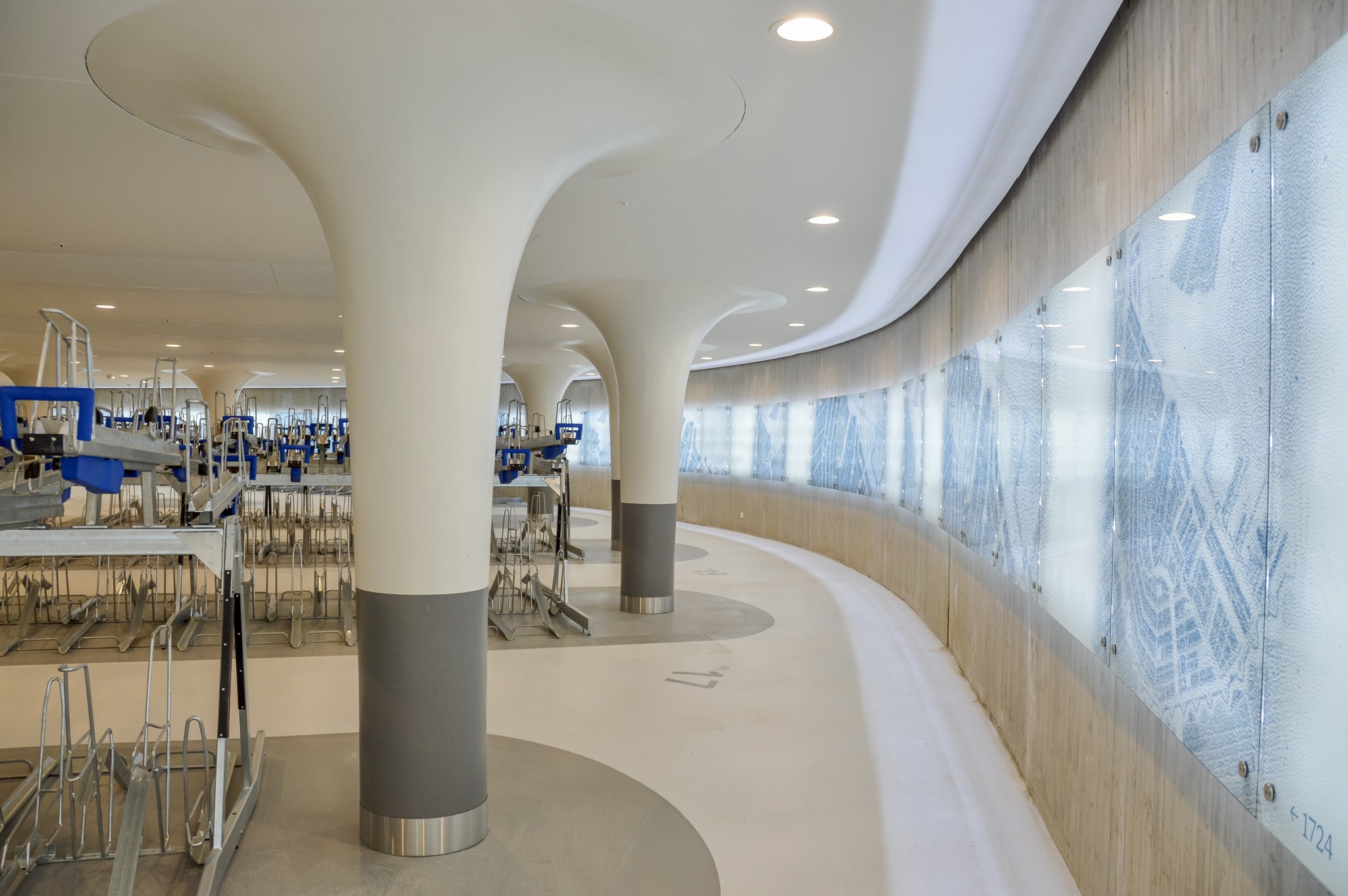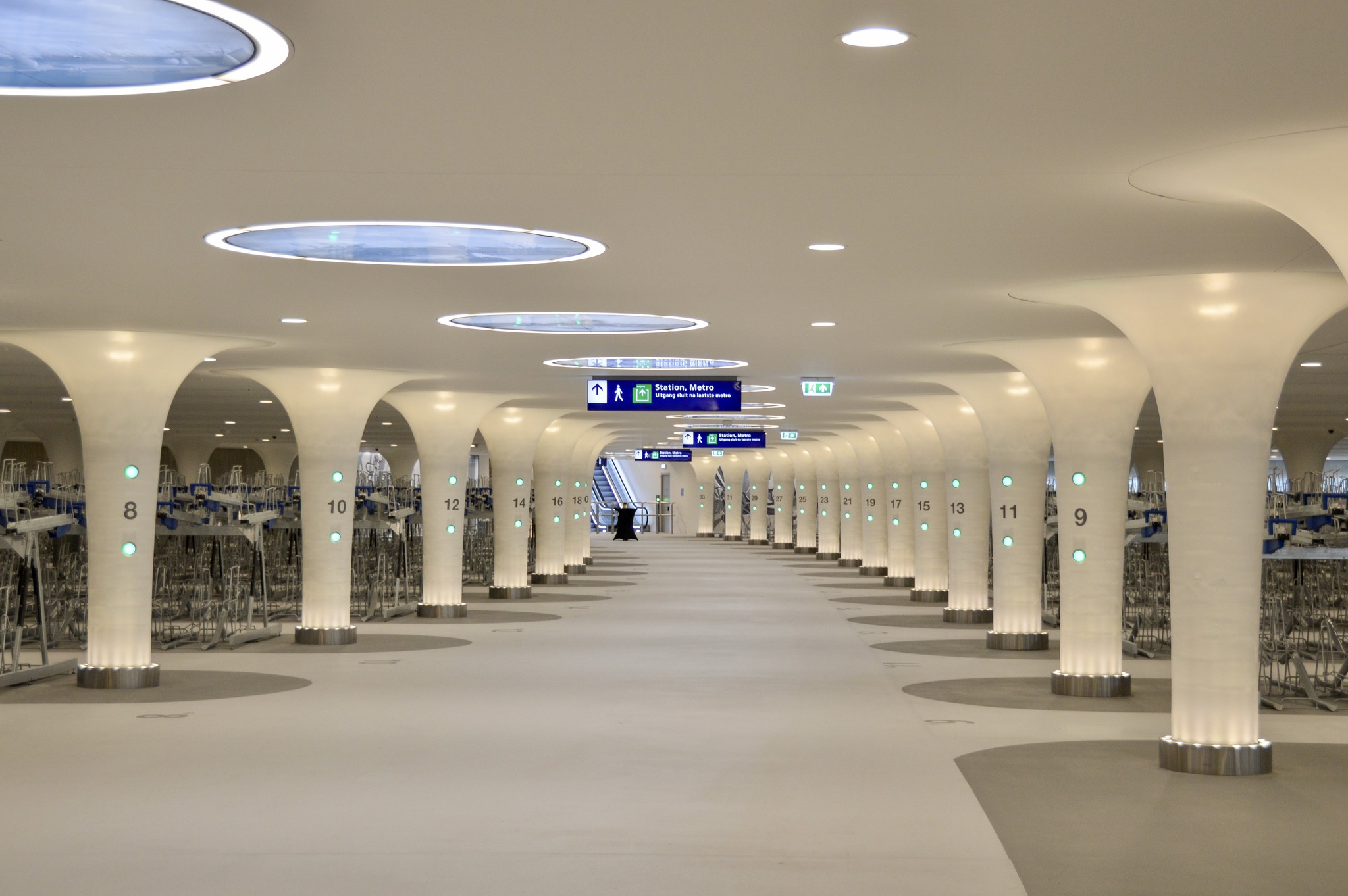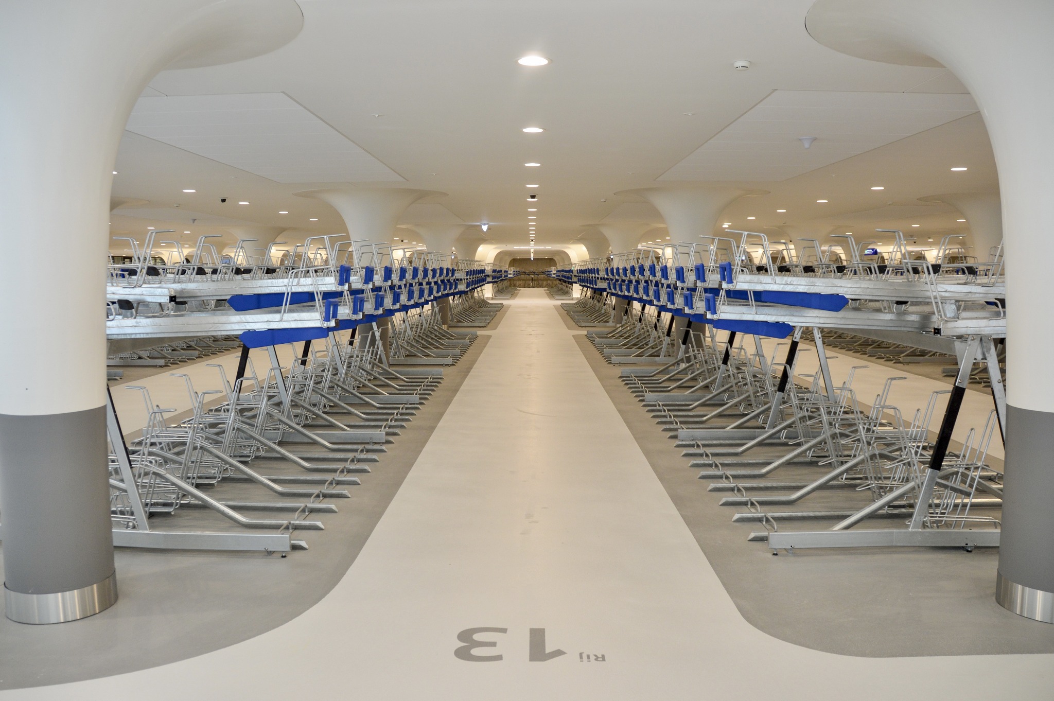 Ficam debaixo de água, na zona do porto marítimo, junto à Estação Central. Um deles com capacidade para 7.000, e o outro para 4.000 bicicletas. Em conjunto poderão albergar 11.000 velocípedes a pedal, e até tem oficina onde é possível fazer reparações.