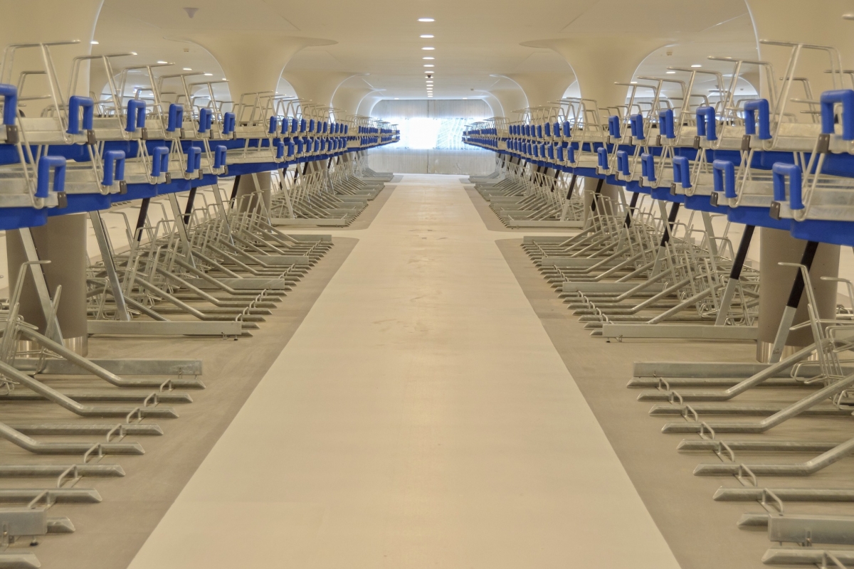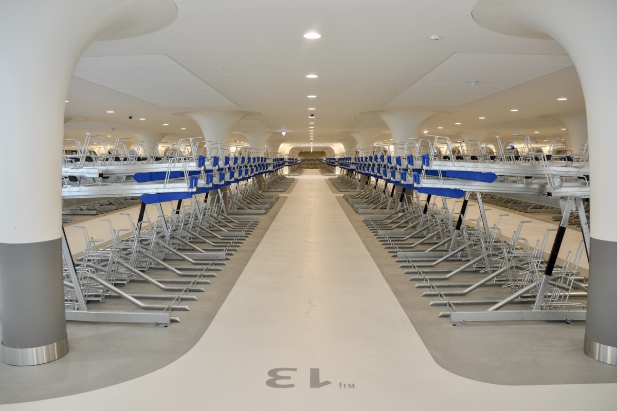 Ficam debaixo de água, na zona do porto marítimo, junto à Estação Central. Um deles com capacidade para 7.000, e o outro para 4.000 bicicletas. Em conjunto poderão albergar 11.000 velocípedes a pedal, e até tem oficina onde é possível fazer reparações.