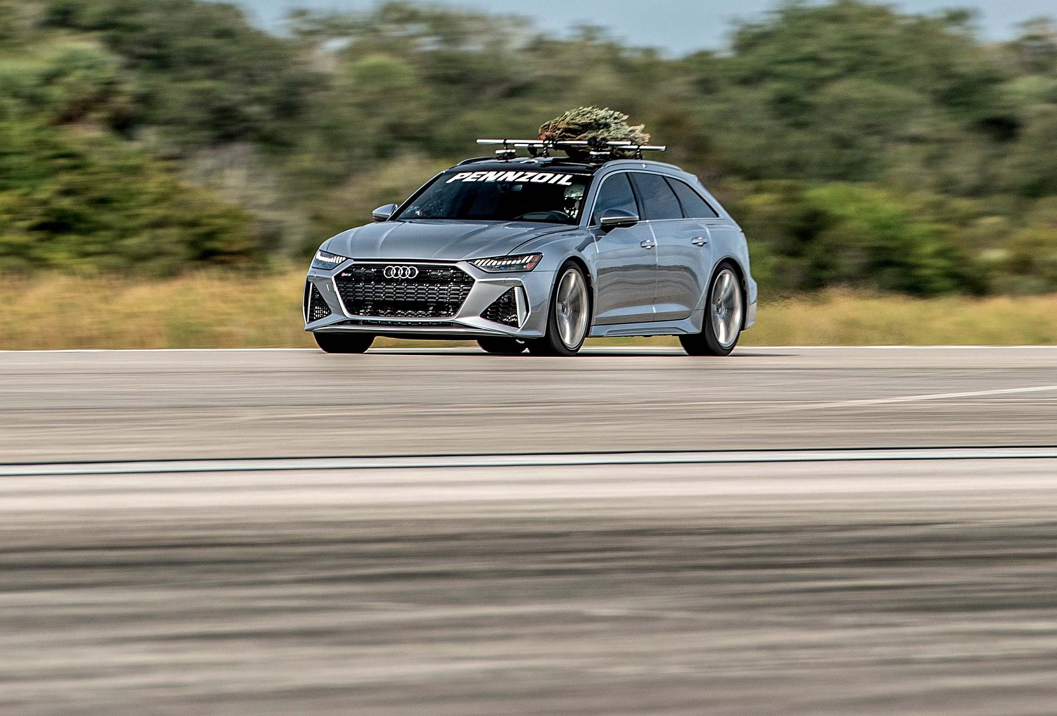 Assim, recorreram à Audi RS 6 Avant da mulher de John Hennessey, com mais de 800 CV de potência e um sistema de escape modificado, para montar um abeto-de-douglas (espécie de pinheiro nativo daquela região dos Estados Unidos da América) no tejadilho. O veículo foi conduzido pelo instrutor de condução e piloto profissional na Ford Performance Driving School, Spencer Geswein.