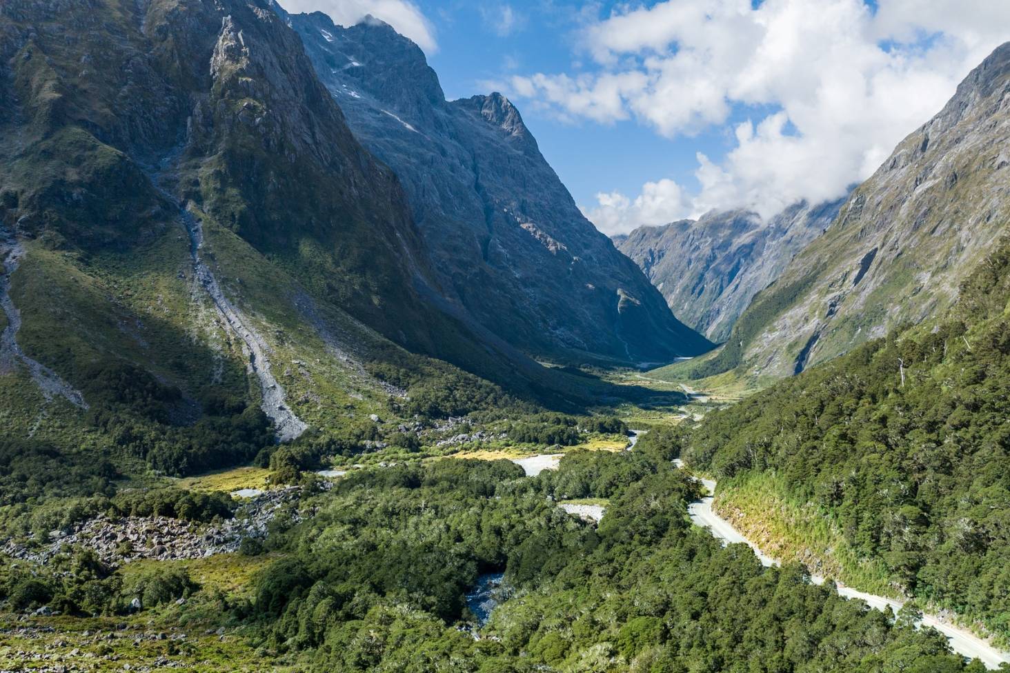 Milford Road, Nova Zelândia: Localizada na Ilha Sul, a Milford Road é uma estrada de montanha fascinante, com vistas impressionantes dos fiordes e glaciares.